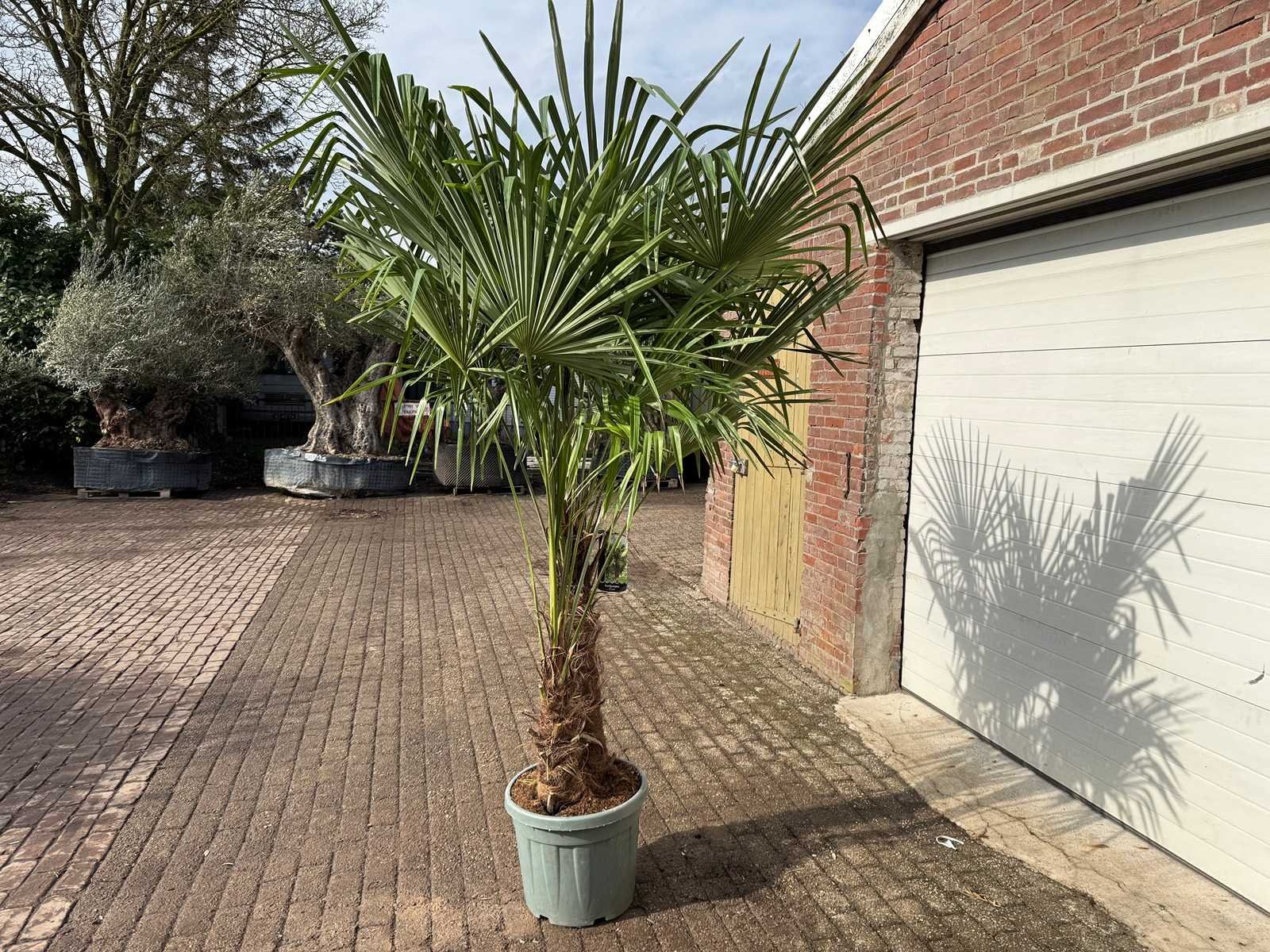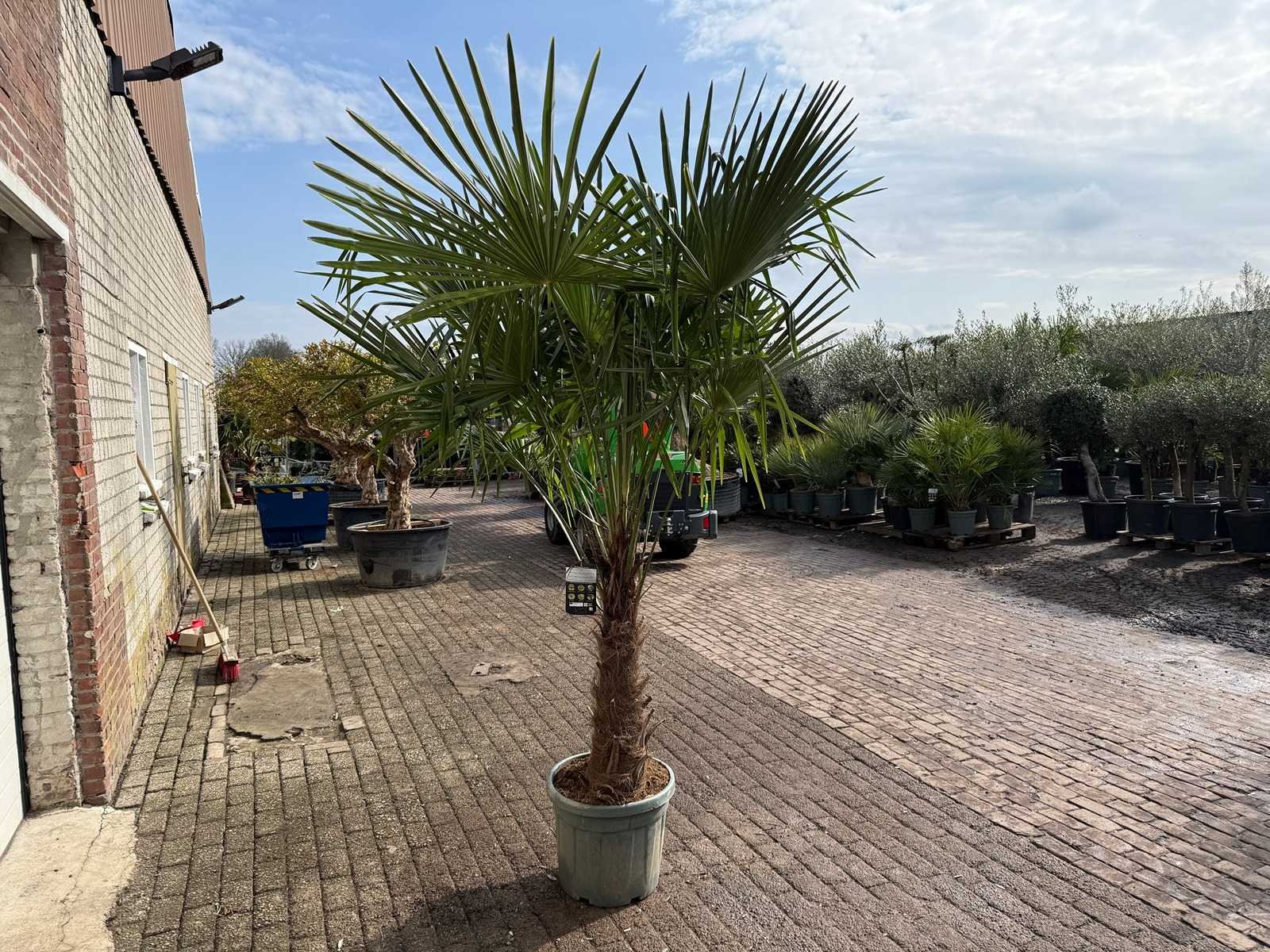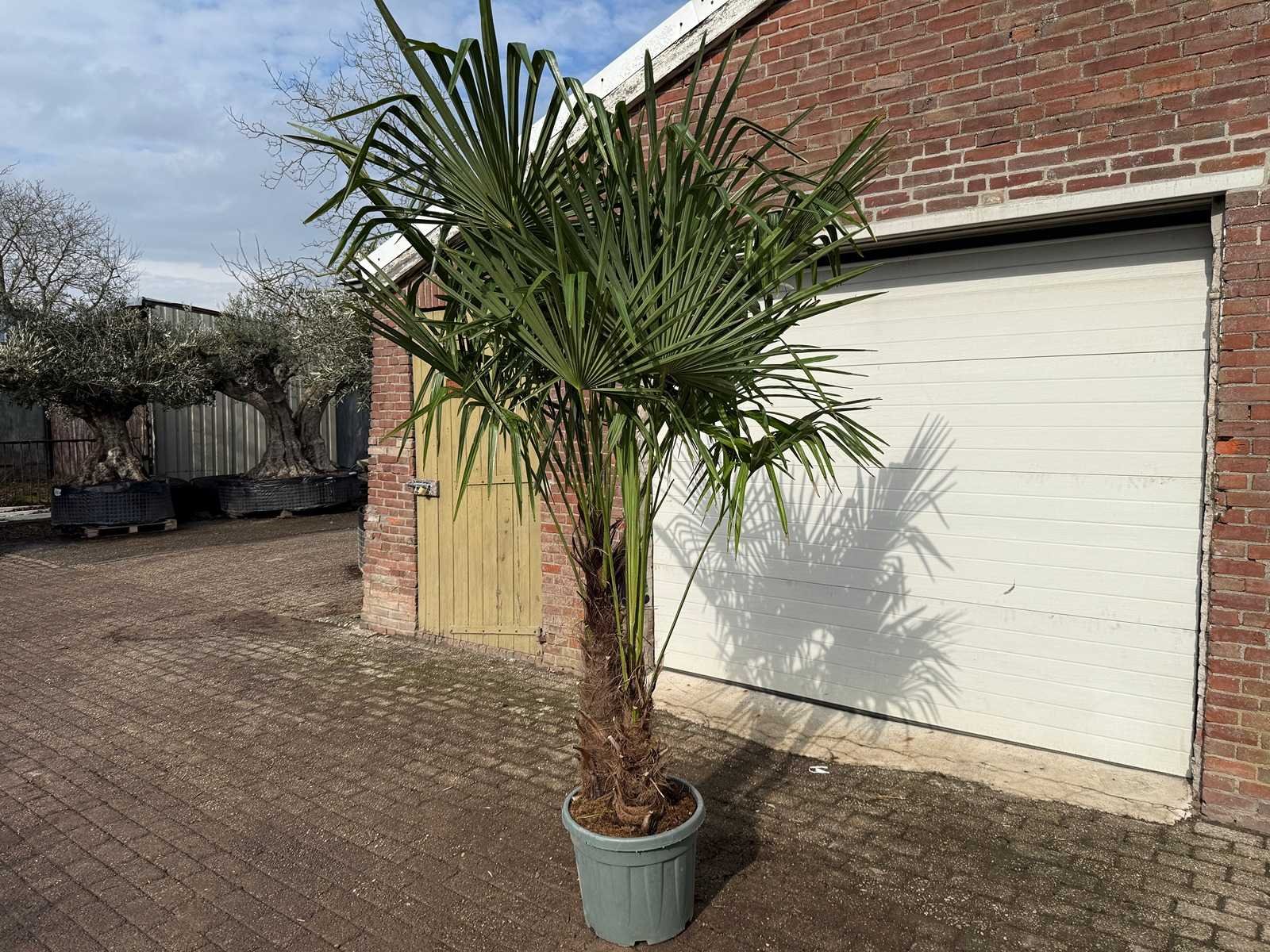 Type: Dubbele stam Latijnse benaming: Trachycarpus Fortunei Hoogte ca.: 250cm In pot: true Stamdikte: 8cm