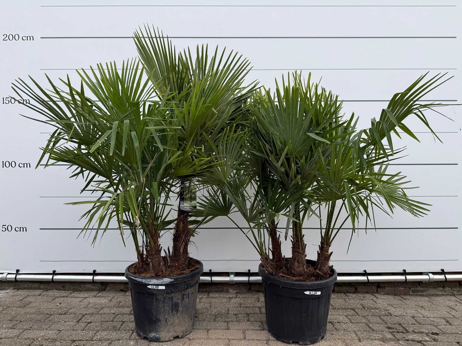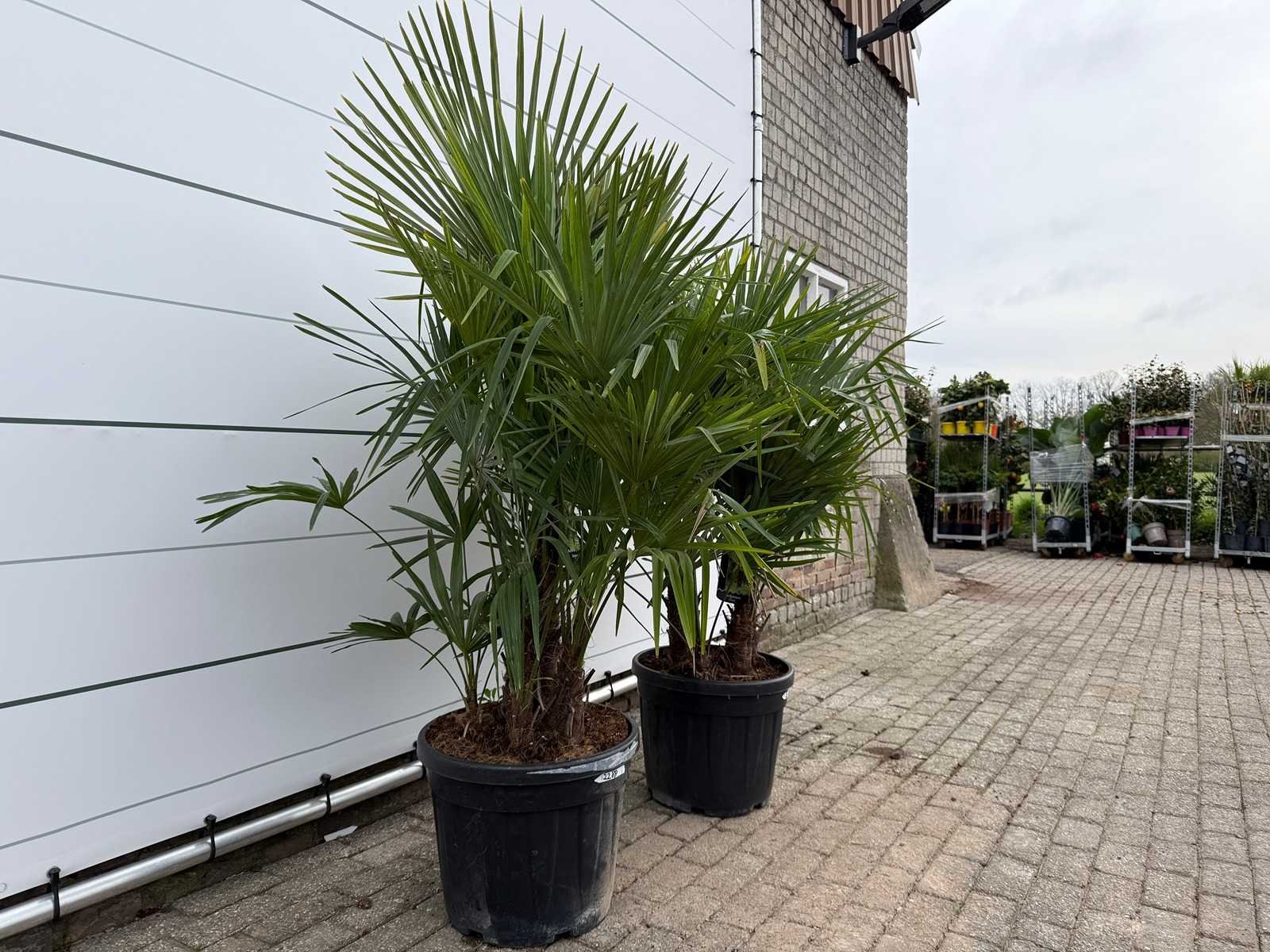 2x chinese waaierpalm driedubbele stam - trachycarpus fortunei - hoogte ca. 180 cm
