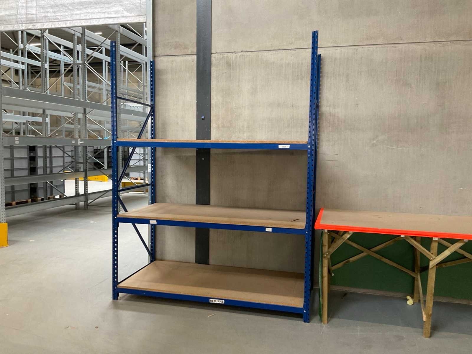 Bestaande uit 10 staanders (290 x 100 CM)en 24 leggers ( 100 x 210 CM)met legplanken . Zonder de inhoud