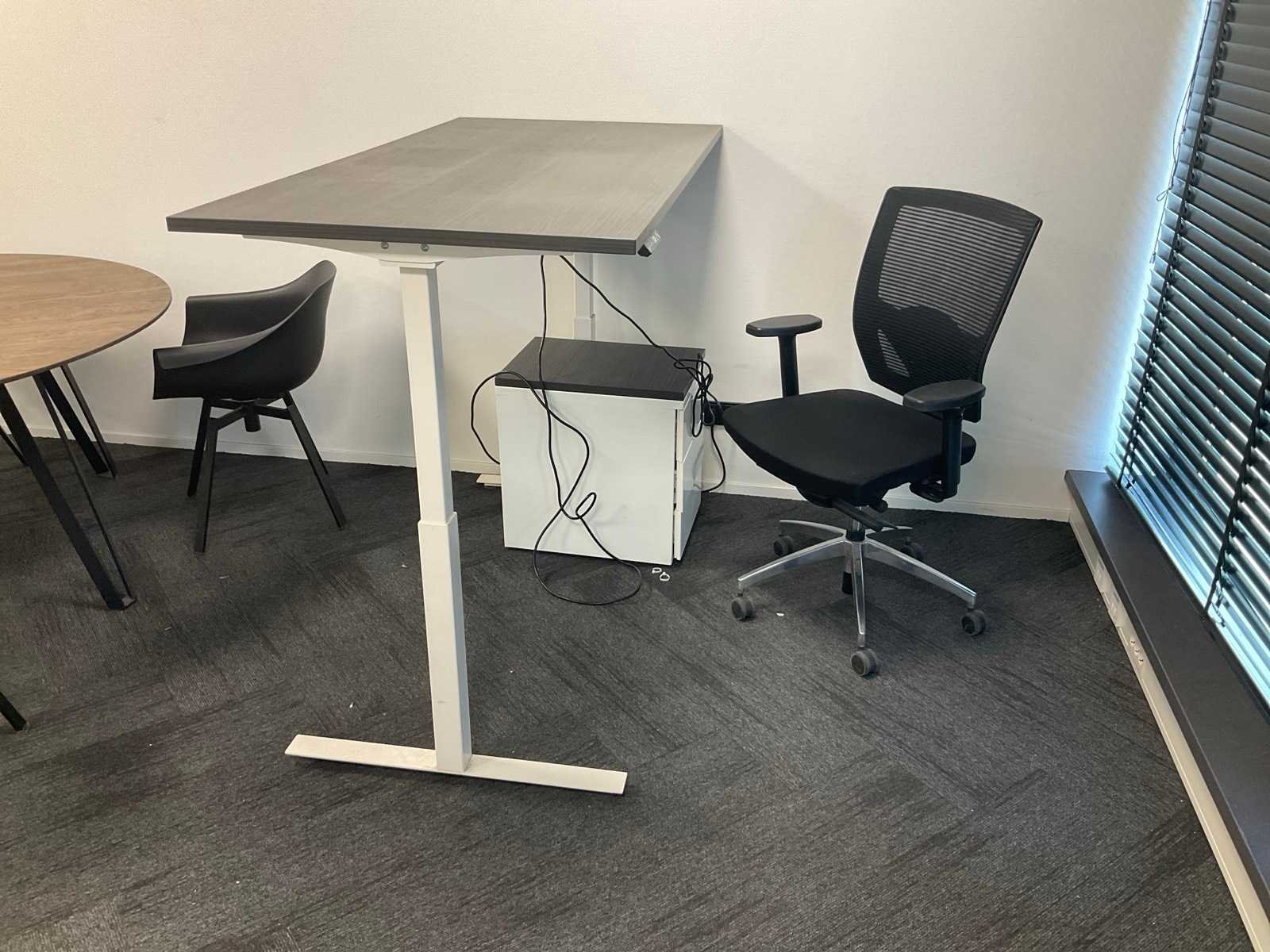 Elektrisch verstebaar bureau met ladeblok en bureaustoel