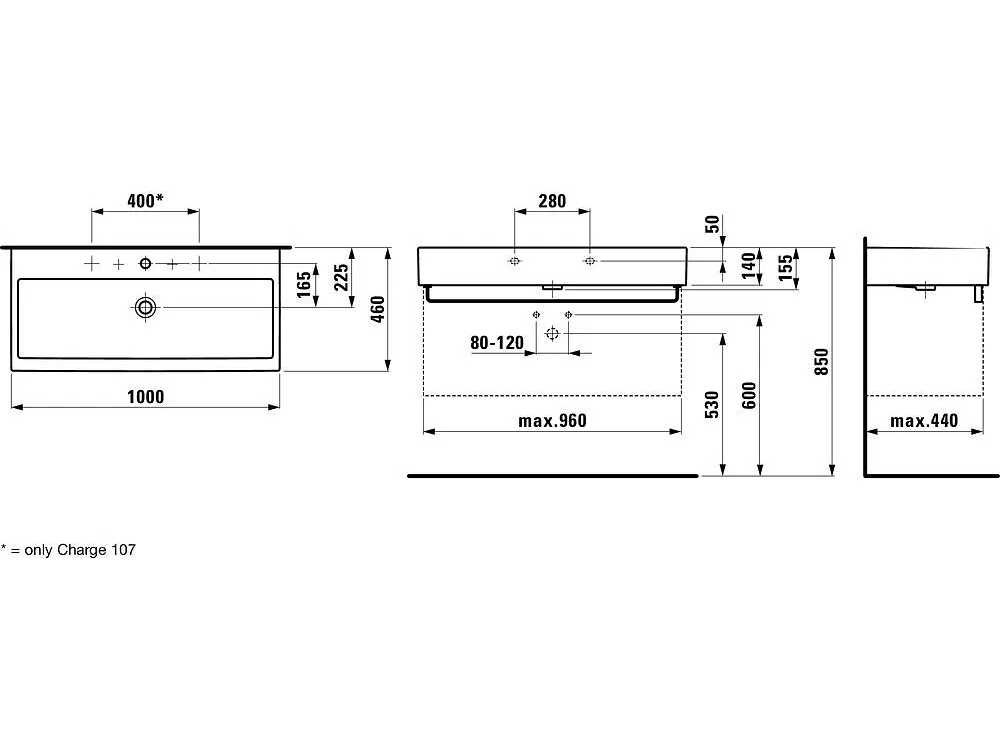 Dubbele wastafel voor in meubel met 2 kraangaten, wit H8184370001071 Merk: Laufen Living Model: Dubbele Lengte: 46cm Breedte: 100cm