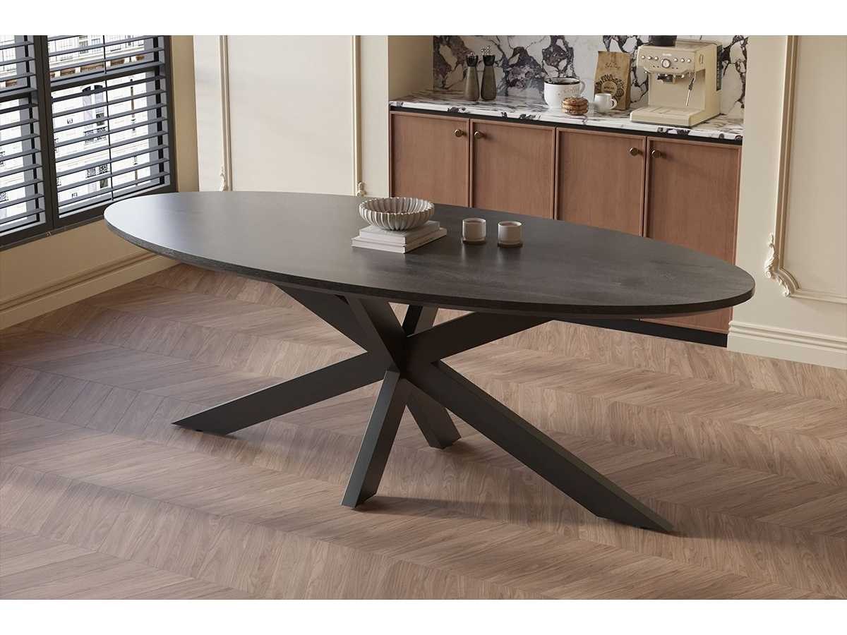Eettafel mango - ovaal - 240x100x76 cm - zwart - spinpoot 5x10