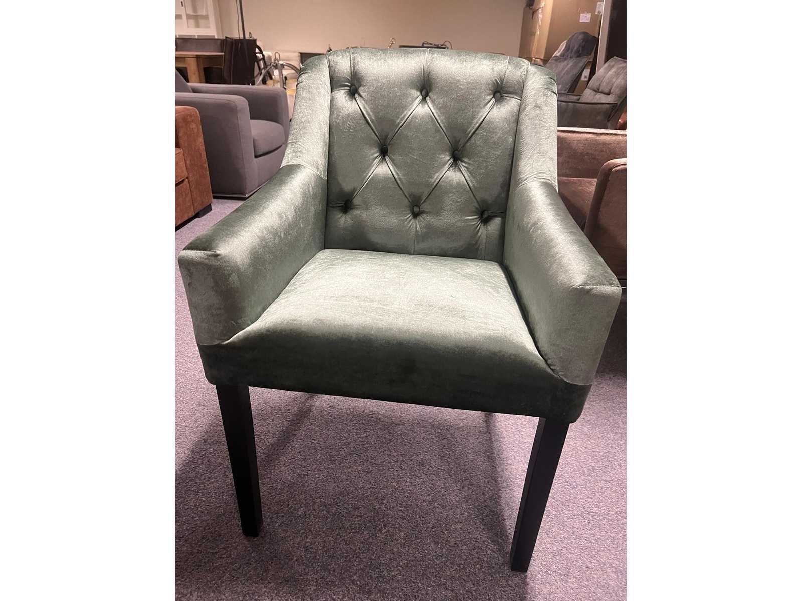 Gekapitoneerde fauteuil velvet groenmassief beuken romp koudschuim gevuld nosag geveerd