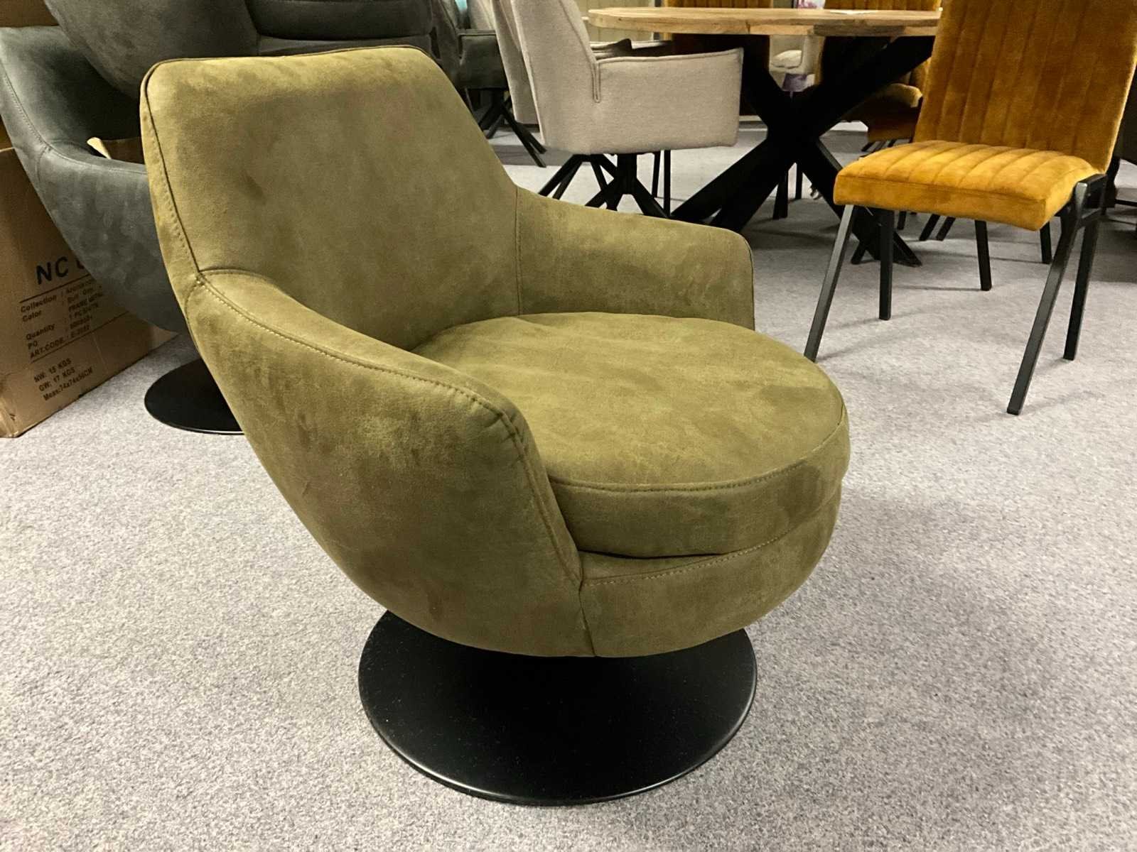 Kleur: Mosgroen Gewicht: 17kg Lengte: 75cm Breedte: 72cm Hoogte: 78cm Zithoogte: 42cm Materiaal: Leer
