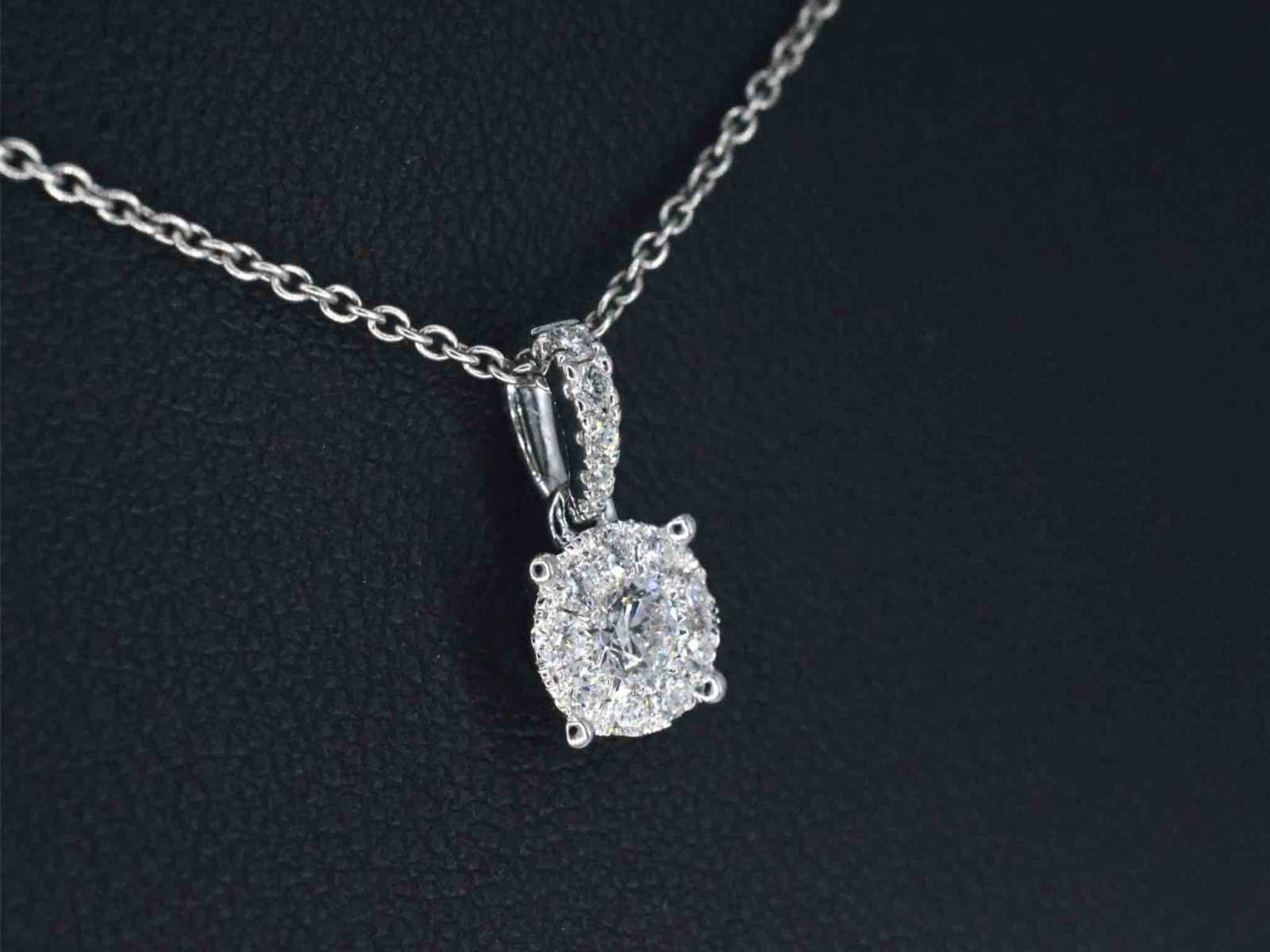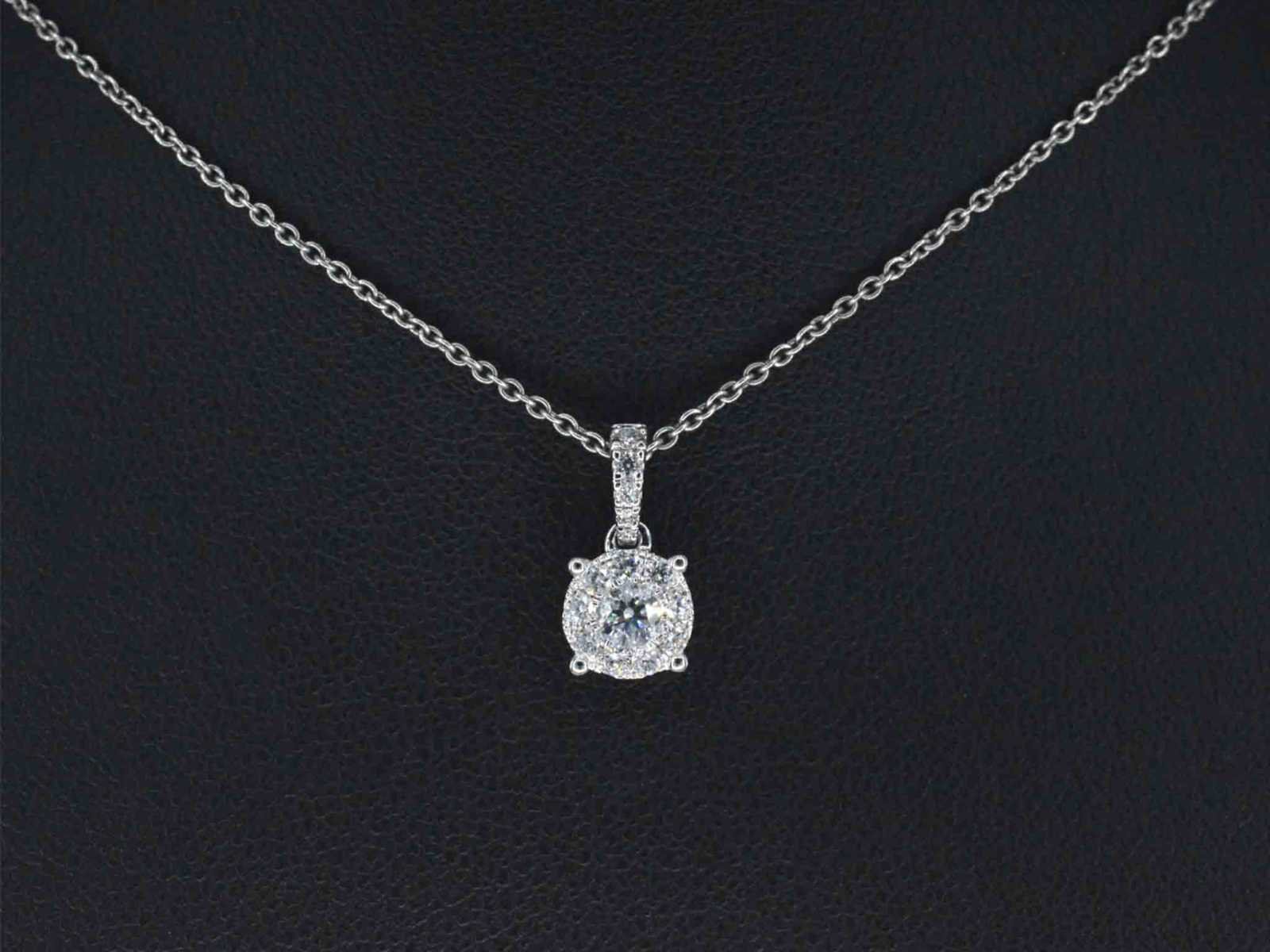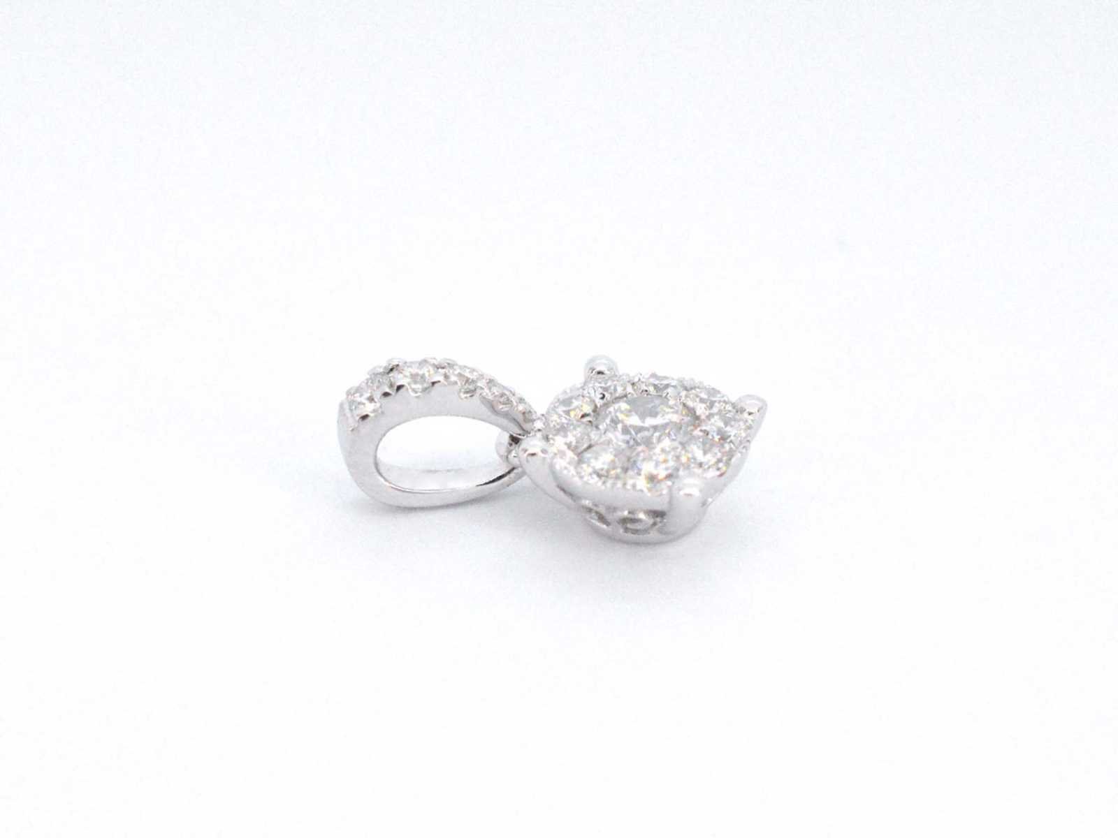 Samenvatting van gegevens Witgouden entourage hanger met briljant geslepen diamanten Diamant: Natuurlijk; Slijpvorm: Briljant geslepen; Gewicht (carat): 0.45 carat; Kleur: F-G; Zuiverheid: VS; Slijpkwaliteit: Zeer mooi; Juweel: Hanger (excl. ketting); Gewicht: 0.9 gram; Materiaal: 18K goud (750); Conditie: Nieuw; Verpakking: Luxe sieradendoos; Toelichting: De kwaliteit is overgenomen van het rapport behorend bij item. De waardebepaling is een beoordeling van een gecertificeerde diamantair, gebaseerd op consumentenprijzen.; Consumentenprijs: € 2.730,- Within 14 days Materiaal: Goud Voornaamste diamant: Natuurlijk Kleur diamant: F-G Gewicht diamant: 0.45ct Slijpvorm diamant: Briljant geslepen Slijpkwaliteit diamant: Zeer mooi Zuiverheidsgraad diamant: VS Totaal gewicht: 0.9g Keurmerk: 750 Lage schatting: 2184€ Hoge schatting: 2730€
