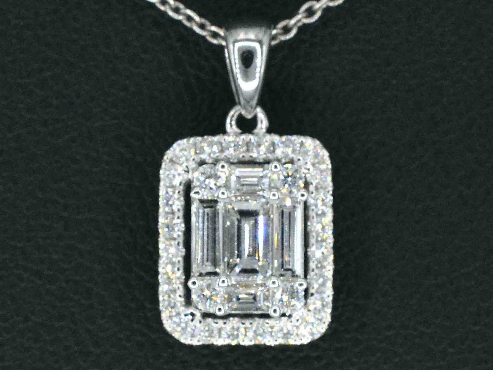 Samenvatting van gegevens Witgouden hanger met diamanten en emerald shape in het midden Diamant: Natuurlijk; Slijpvorm: Briljant geslepen en baguette geslepen; Gewicht (carat): 0.80 carat; Kleur: F-G; Zuiverheid: VS; Slijpkwaliteit: Zeer mooi; Juweel: Hanger (excl. ketting); Gewicht: 1.5 gram; Materiaal: 18K goud (750); Conditie: Nieuw; Verpakking: Luxe sieradendoos; Toelichting: De kwaliteit is overgenomen van het rapport behorend bij item. De waardebepaling is een beoordeling van een gecertificeerde diamantair, gebaseerd op consumentenprijzen.; Consumentenprijs: € 6.825,- Within 14 days Materiaal: Goud Voornaamste diamant: Natuurlijk Kleur diamant: F-G Gewicht diamant: 0.80ct Slijpvorm diamant: Briljant geslepen en baguette geslepen Slijpkwaliteit diamant: Zeer mooi Zuiverheidsgraad diamant: VS Totaal gewicht: 1.5g Keurmerk: 750 Lage schatting: 5460€ Hoge schatting: 6825€