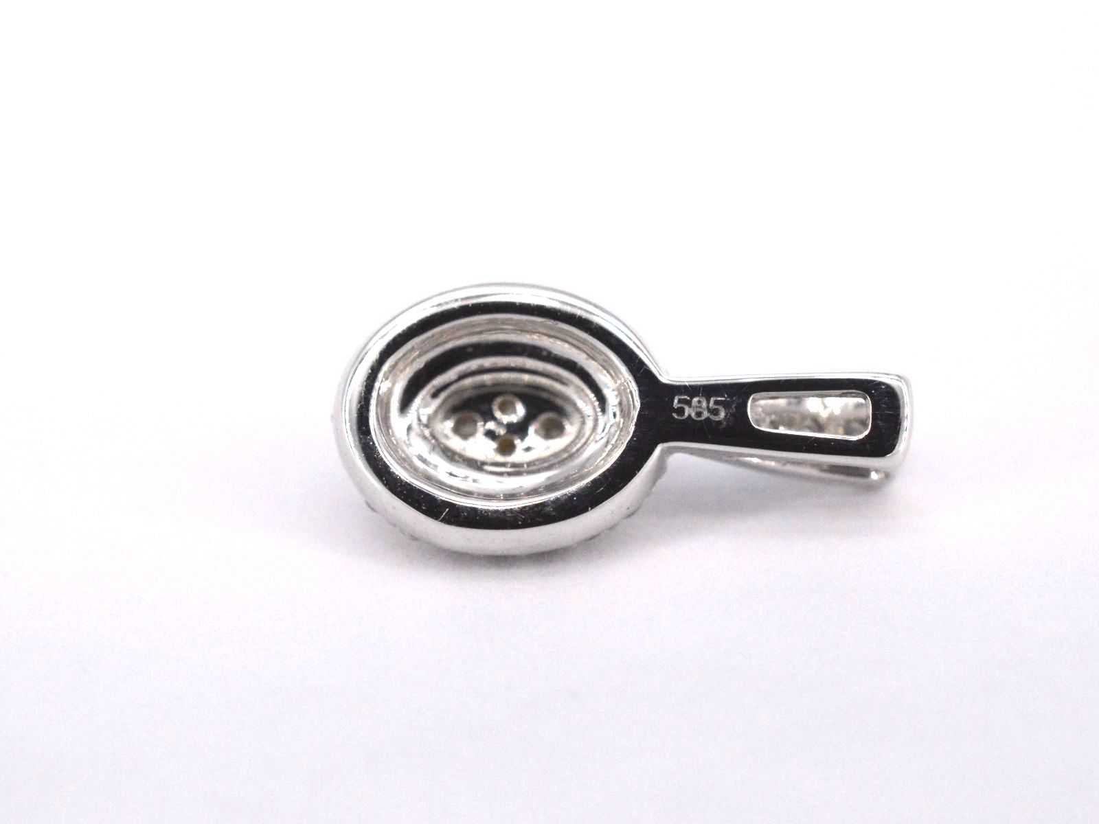 Samenvatting van gegevens Witgouden hanger met diamanten Diamant: Natuurlijk; Slijpvorm: Rond geslepen; Gewicht (carat): 0.20 carat; Kleur: F-G; Zuiverheid: SI-P; Slijpkwaliteit: Goed; Juweel: Hanger (excl. ketting); Gewicht: 0.6 gram; Materiaal: 14 karaat (585); Conditie: Nieuw; Verpakking: Luxe sieradendoos; Toelichting: De kwaliteit is overgenomen van het rapport behorend bij item. De waardebepaling is een beoordeling van een gecertificeerde diamantair, gebaseerd op consumentenprijzen.; Consumentenprijs: € 700,- Within 14 days Voornaamste diamant: Natuurlijk Kleur diamant: F-G Gewicht diamant: 0.20ct Slijpvorm diamant: Rond geslepen Slijpkwaliteit diamant: Goed Zuiverheidsgraad diamant: SI-P Totaal gewicht: 0.6g Keurmerk: 585 Lage schatting: 560€ Hoge schatting: 700€