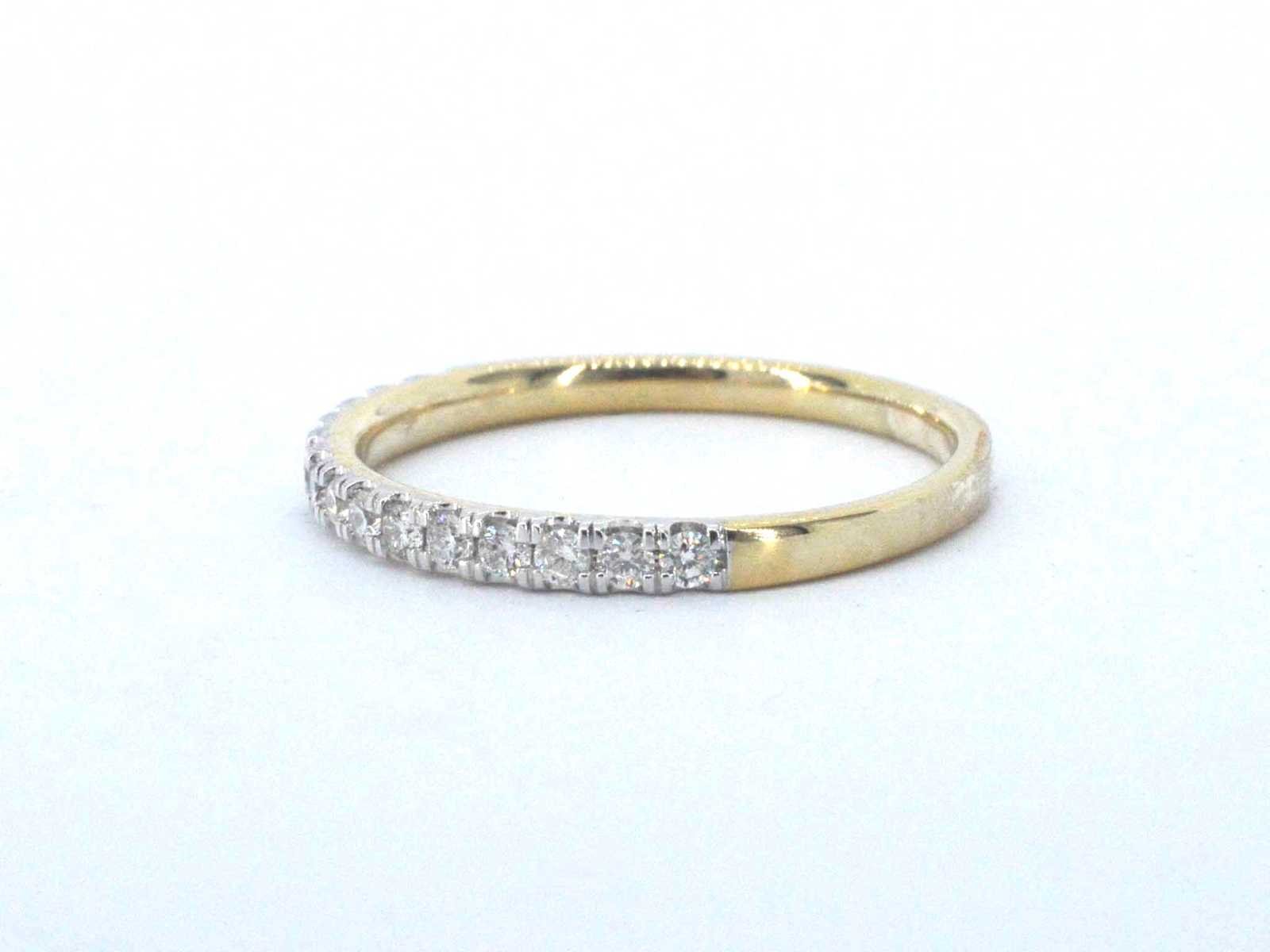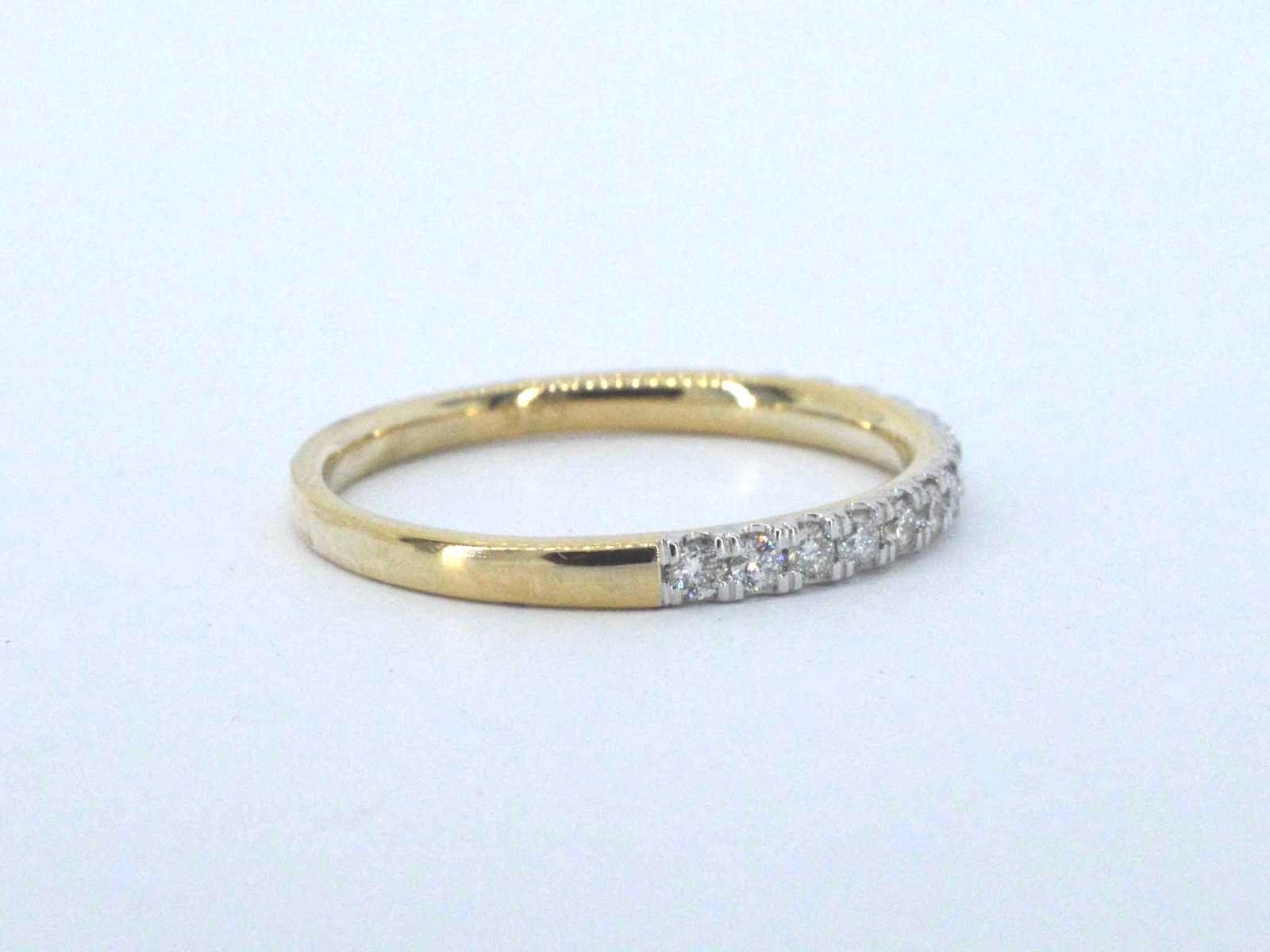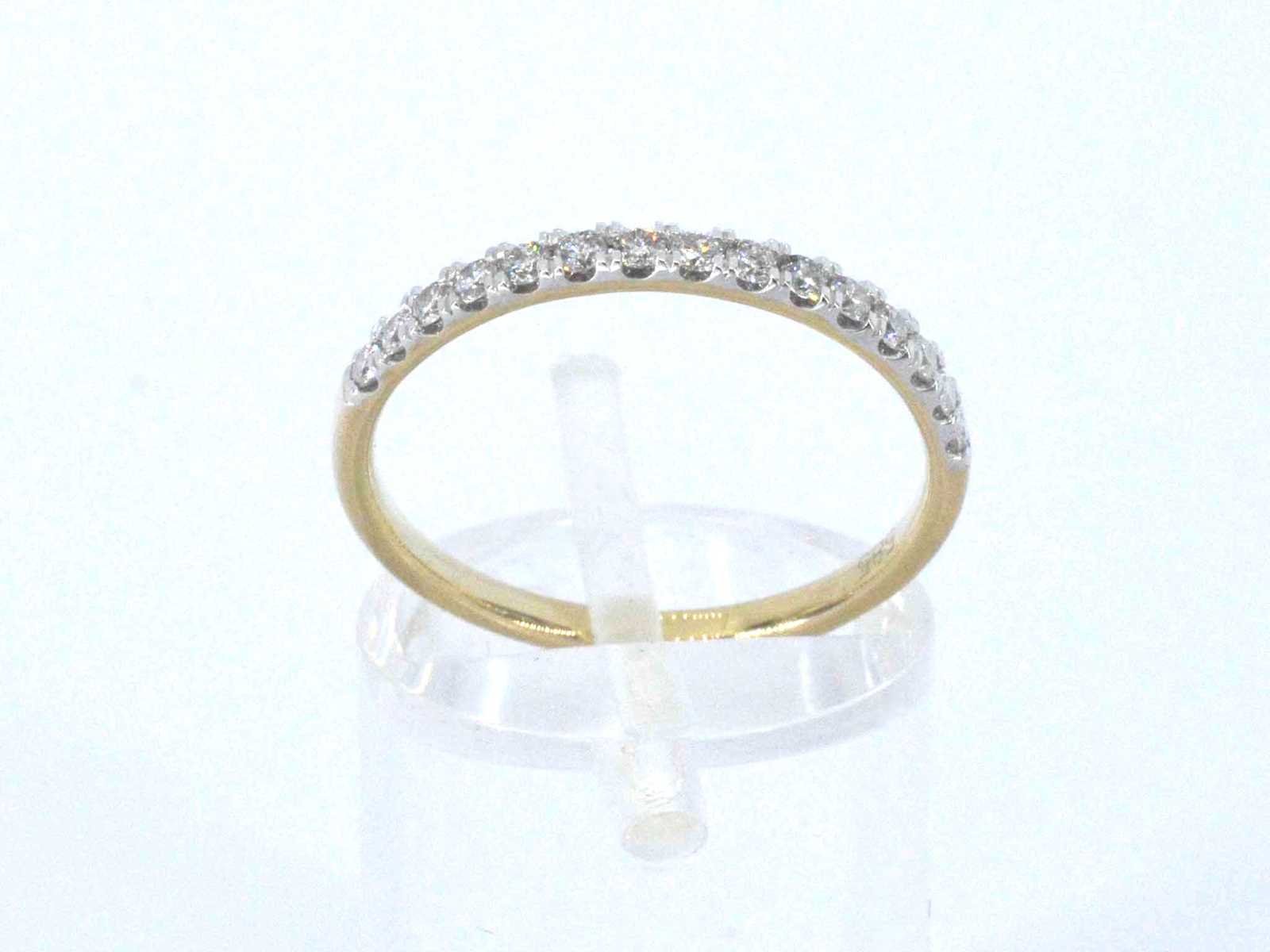 Samenvatting van gegevens Gouden ring met diamanten Diamant: Natuurlijk; Aantal: 15 stuks; Slijpvorm: Briljant geslepen; Gewicht (carat): 0.30 carat; Kleur: F-G; Zuiverheid: VS-SI; Slijpkwaliteit: Zeer mooi; Juweel: Ring; Gewicht: 1.5 gram; Ringmaat (op maat gemaakt*): 53 (17 mm); Materiaal: 14 karaat (585); Conditie: Nieuw; Verpakking: Luxe sieradendoos; Toelichting: De kwaliteit is overgenomen van het rapport behorend bij item. De waardebepaling is een beoordeling van een gecertificeerde diamantair, gebaseerd op consumentenprijzen.; Consumentenprijs: € 1.873,- Within 14 days Voornaamste diamant: Natuurlijk Gewicht diamant: 0.30ct Totaal gewicht: 1.5g Keurmerk: 585 Lage schatting: 1498€ Hoge schatting: 1873€ Kleur diamant: F-G Slijpvorm diamant: Briljant geslepen Slijpkwaliteit diamant: Zeer mooi Zuiverheidsgraad diamant: VS-SI