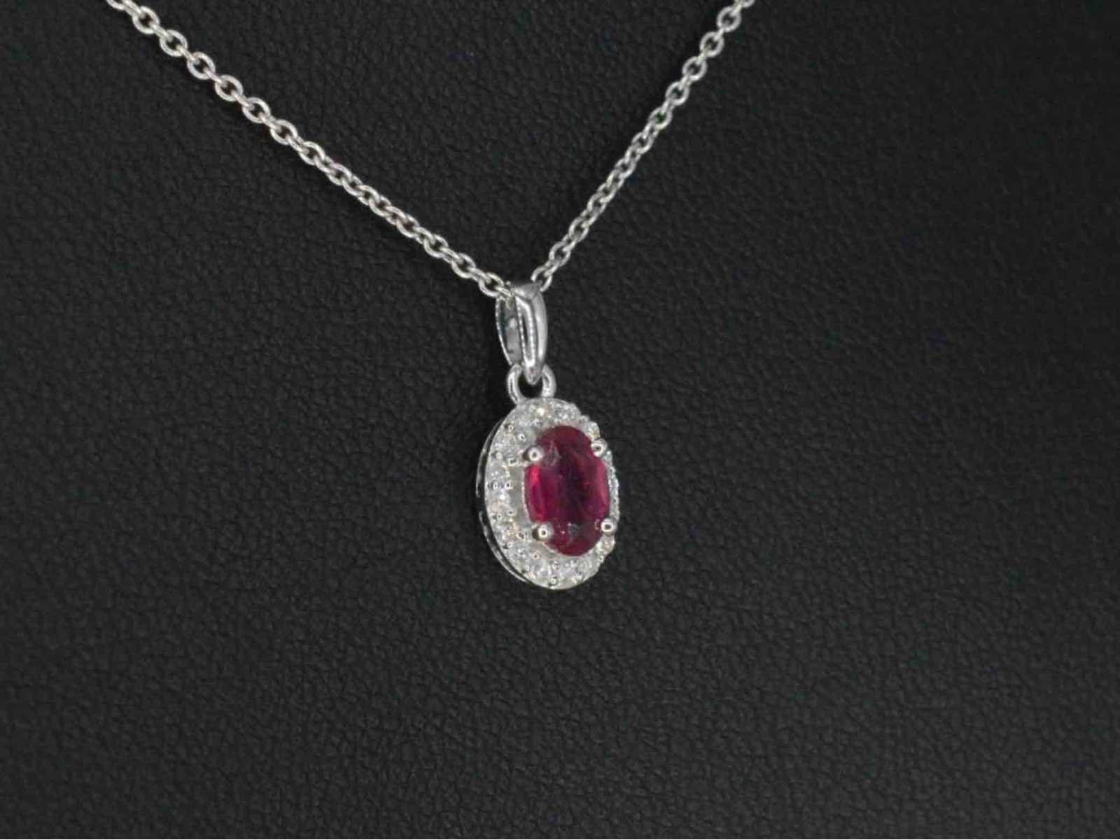Samenvatting van gegevens Witgouden entourage hanger met diamanten en robijn Diamant: Natuurlijk; Slijpvorm: Briljant geslepen; Gewicht (carat): 0.12 carat; Kleur: F-G; Zuiverheid: SI; Slijpkwaliteit: Zeer mooi; Edelsteen: robijn; Slijpvorm: Ovaal; Gewicht (carat): 0.65 carat; Kleur: rood; Juweel: Hanger (excl. ketting); Gewicht: 1 gram; Materiaal: 14k goud (585); Conditie: Nieuw; Verpakking: Luxe sieradendoos; Toelichting: De kwaliteit is overgenomen van het rapport behorend bij item. De waardebepaling is een beoordeling van een gecertificeerde diamantair, gebaseerd op consumentenprijzen.; Consumentenprijs: € 928,- Within 14 days Materiaal: Goud Voornaamste diamant: Natuurlijk Kleur diamant: F-G Gewicht diamant: 0.12ct Slijpvorm diamant: Briljant geslepen Slijpkwaliteit diamant: Zeer mooi Zuiverheidsgraad diamant: SI Edelsteen: robijn Kleur edelsteen: rood Slijpvorm edelsteen: Ovaal Totaal gewicht: 1g Keurmerk: 585 Lage schatting: 742€ Hoge schatting: 928€