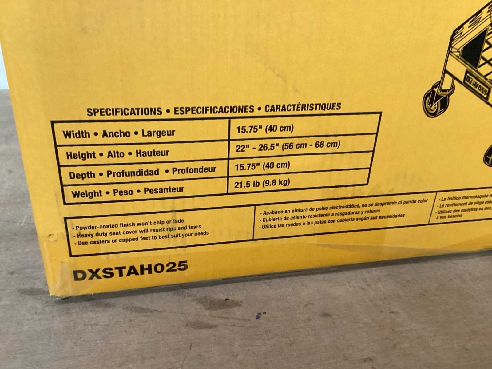 Werkplaatskruk, max 136 kg, vérstelbaar Merk: DeWalt Model: DXSTAH025