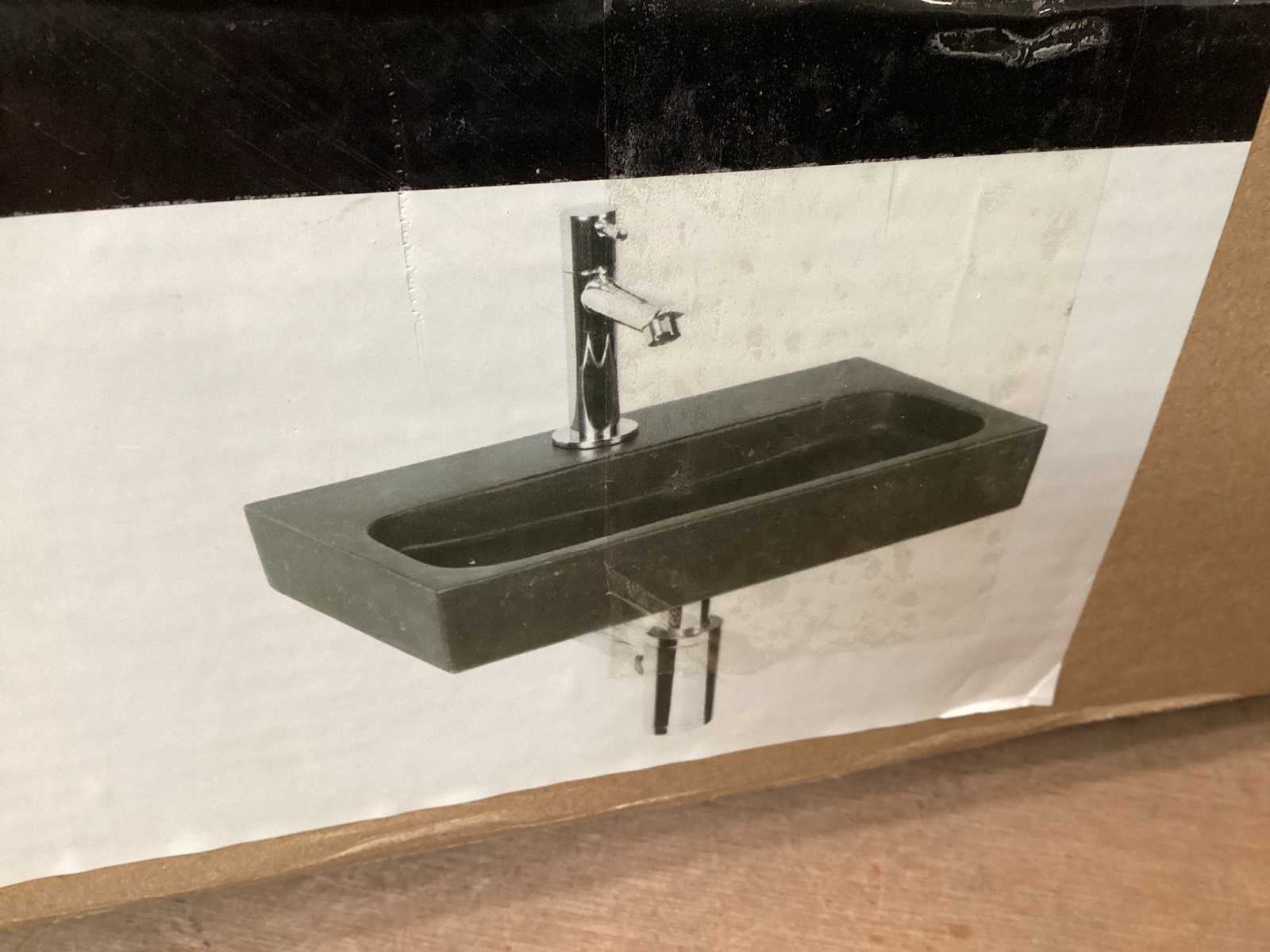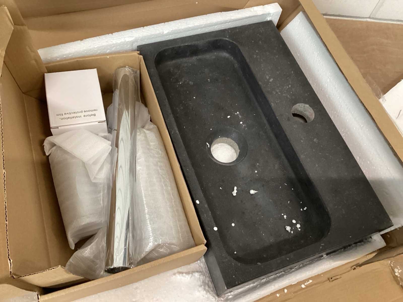 Wasbak natuursteen compleet met kraan, sifon, afvoerplug. Gecontroleerde webshopretour