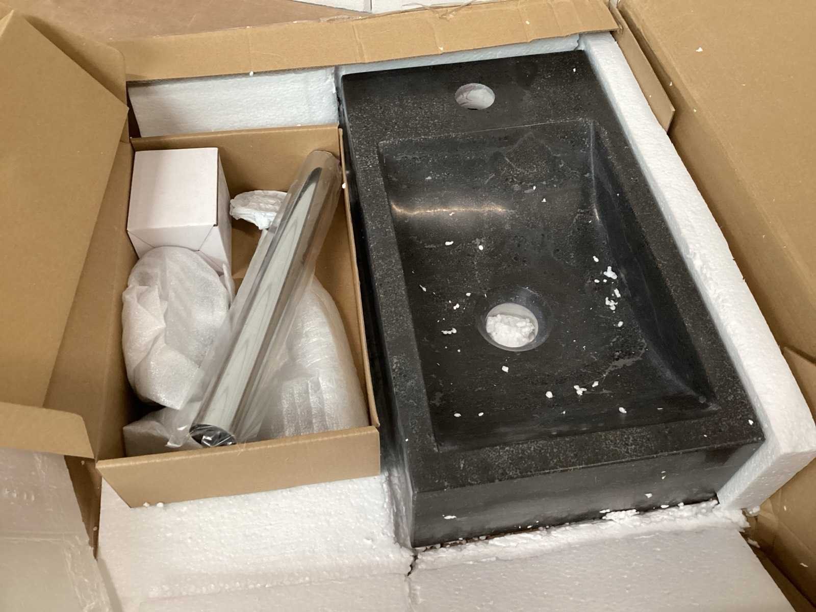Wasbak natuursteen compleet met kraan, sifon, afvoerplug. Gecontroleerde webshopretour
