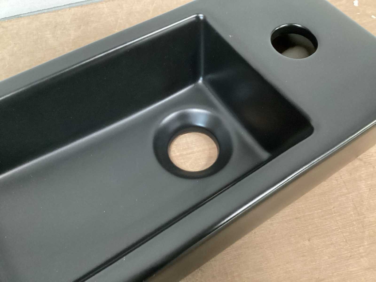 Wasbak zwart keramiek. Gecontroleerde webshopretour