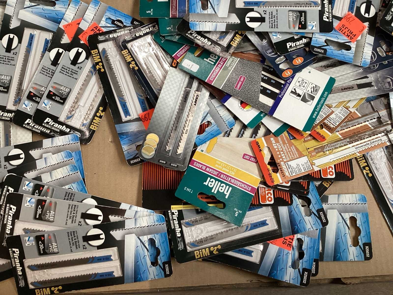 Mix kavel met diverse zaagbladen voor hout, metaal en beton. Verschillende lengtes. Aantal betreft het aantal verpakkingen