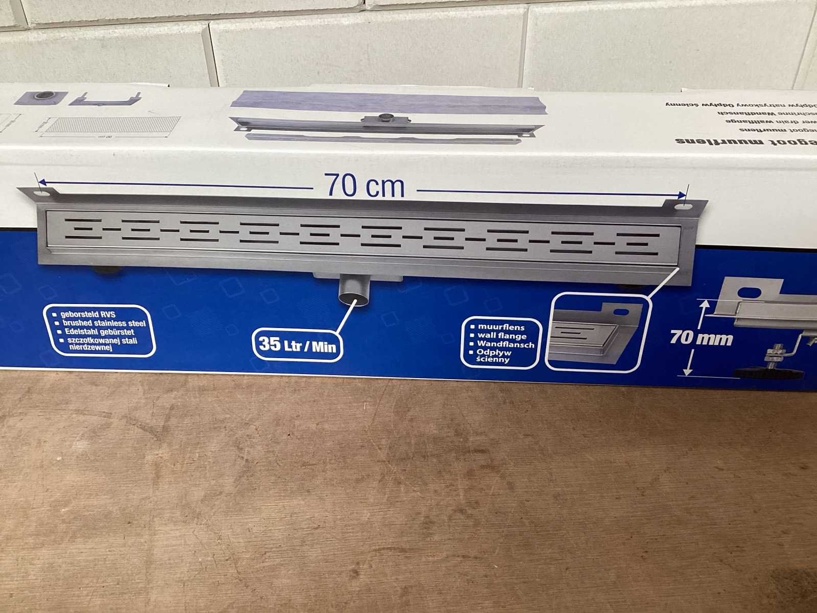 RVS douchegoot met muurflens, inclusief aansluitmaterialen, lengte 70 cm