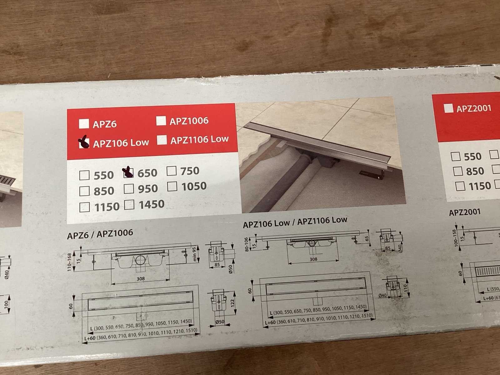 RVS design douchegoot, inclusief aansluitmaterialen, lengte 65 cm, zonder rooster