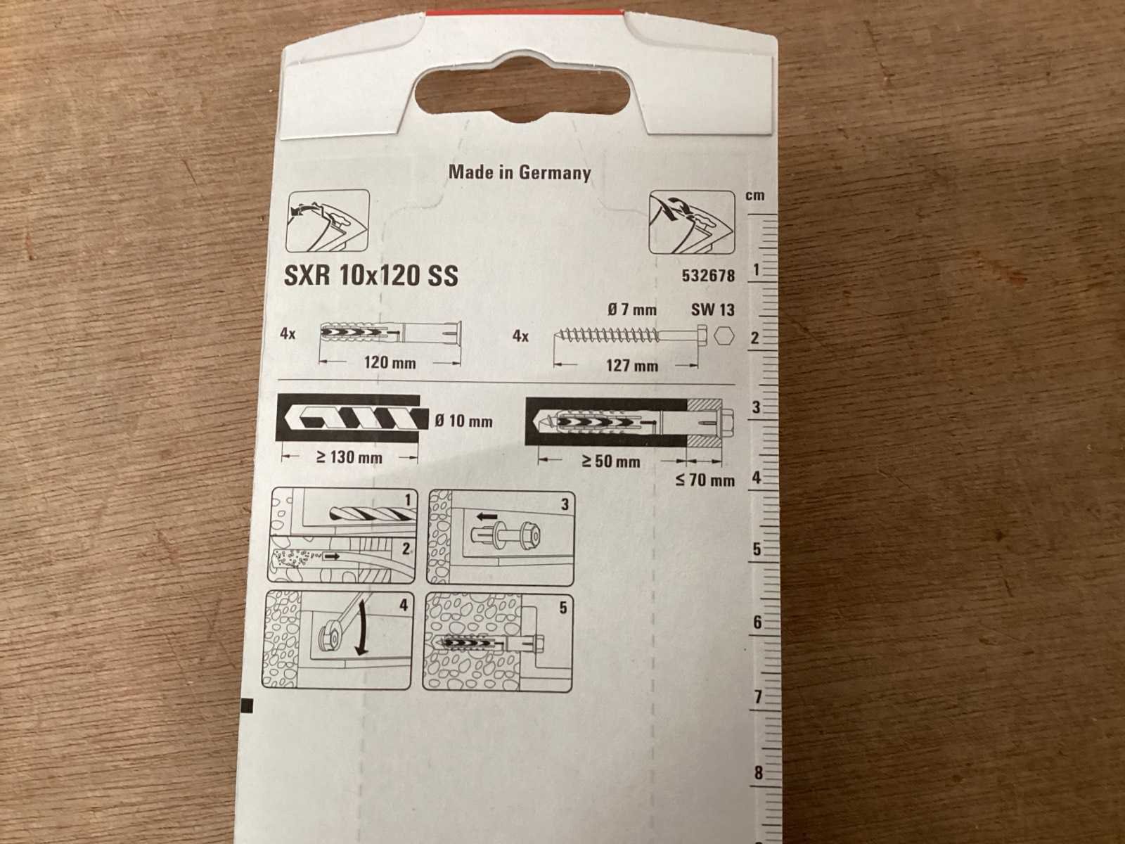 Nylon plug 10x120 met houtdraadbout 7x127 mm, blister met 4 sets Merk: FISCHER Model: SXR10x120