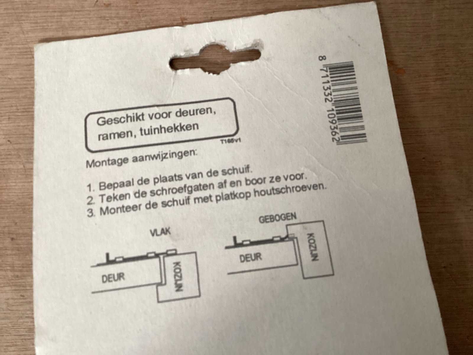 Schuifgrendel vlak, verzinkt, met sluitplaat
