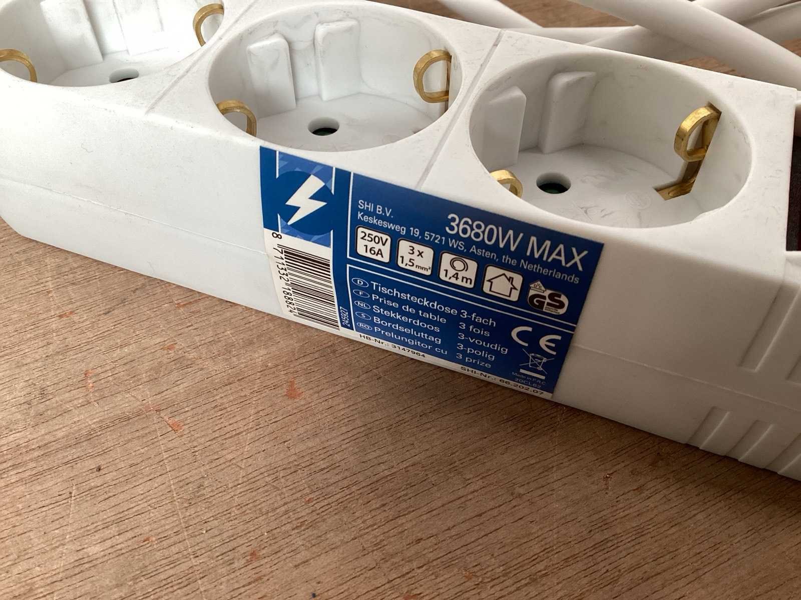 Drievoudige stekkerdoos met randaarde , kabel 1,4 meter, max 3680w Merk: Q-link