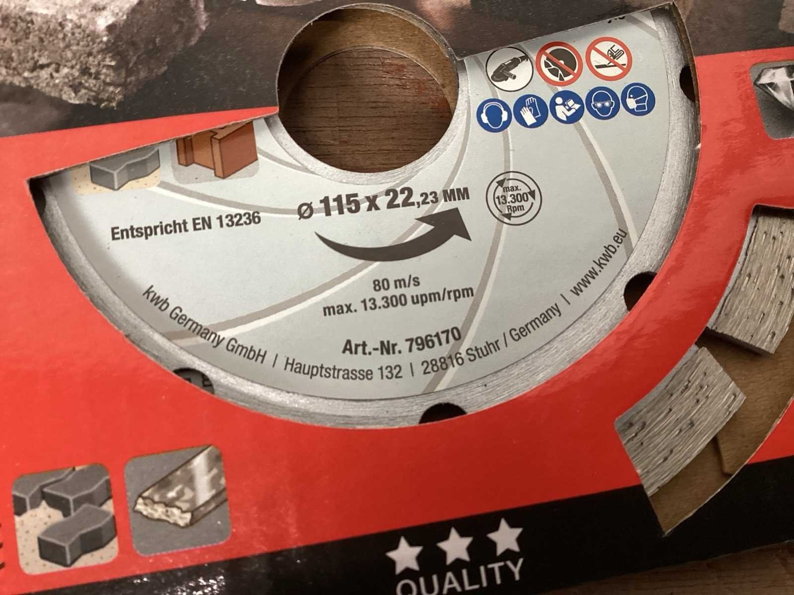 Slijpschijf 115x22,23 mm voor steen en beton Merk: KWB Model: 796170