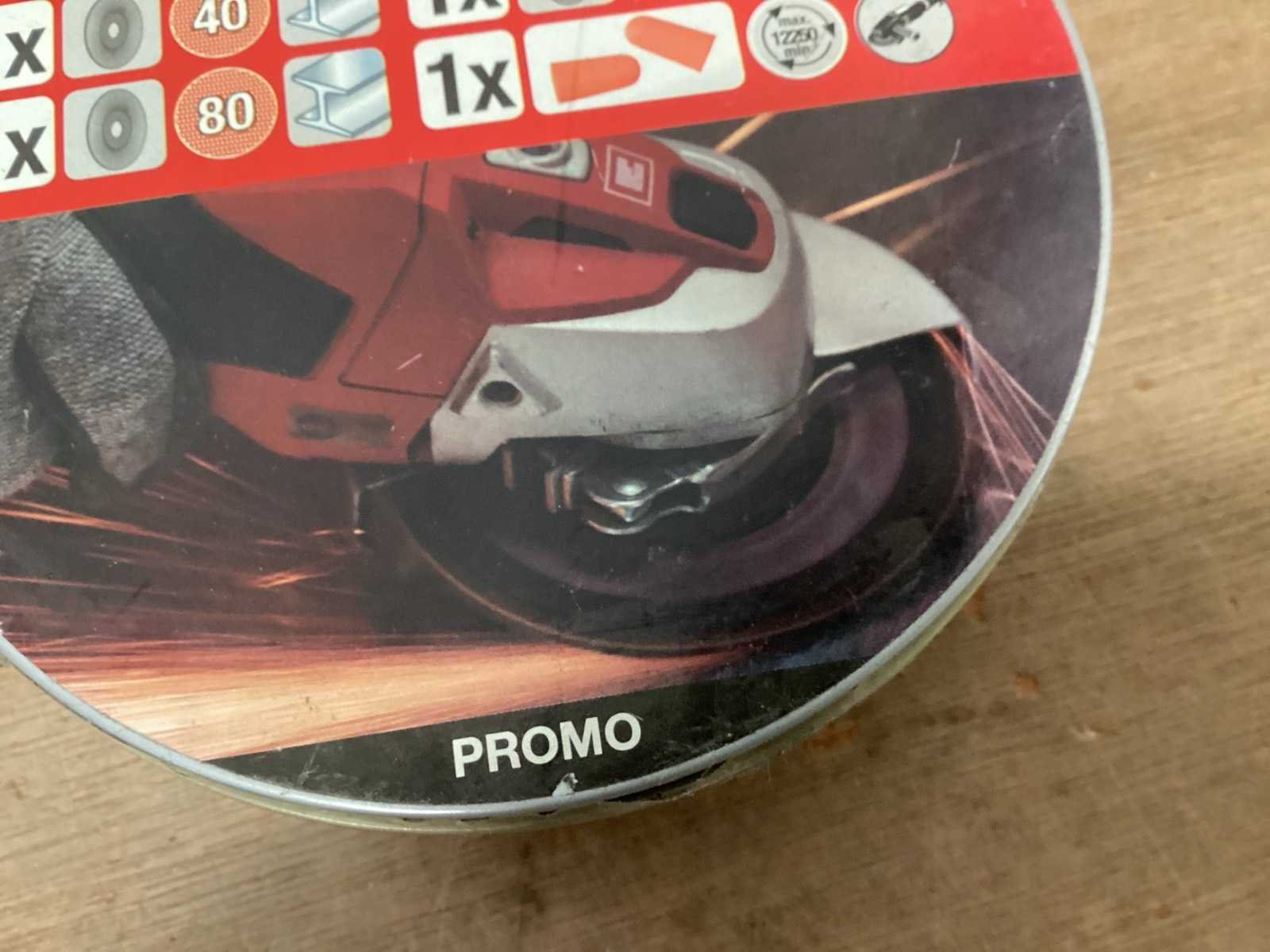 Diverse slijpmoppen in metalen cassette, met oordopjes Merk: KWB