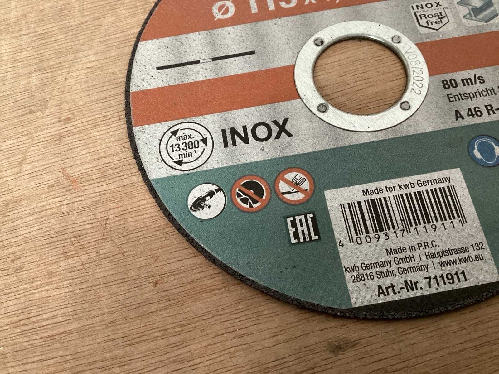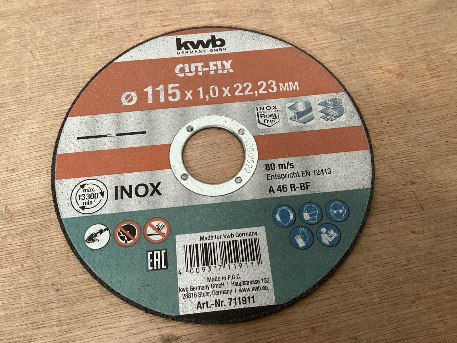 Slijpschijf 115x22,23 mm voor RVS Merk: KWB Model: 711911