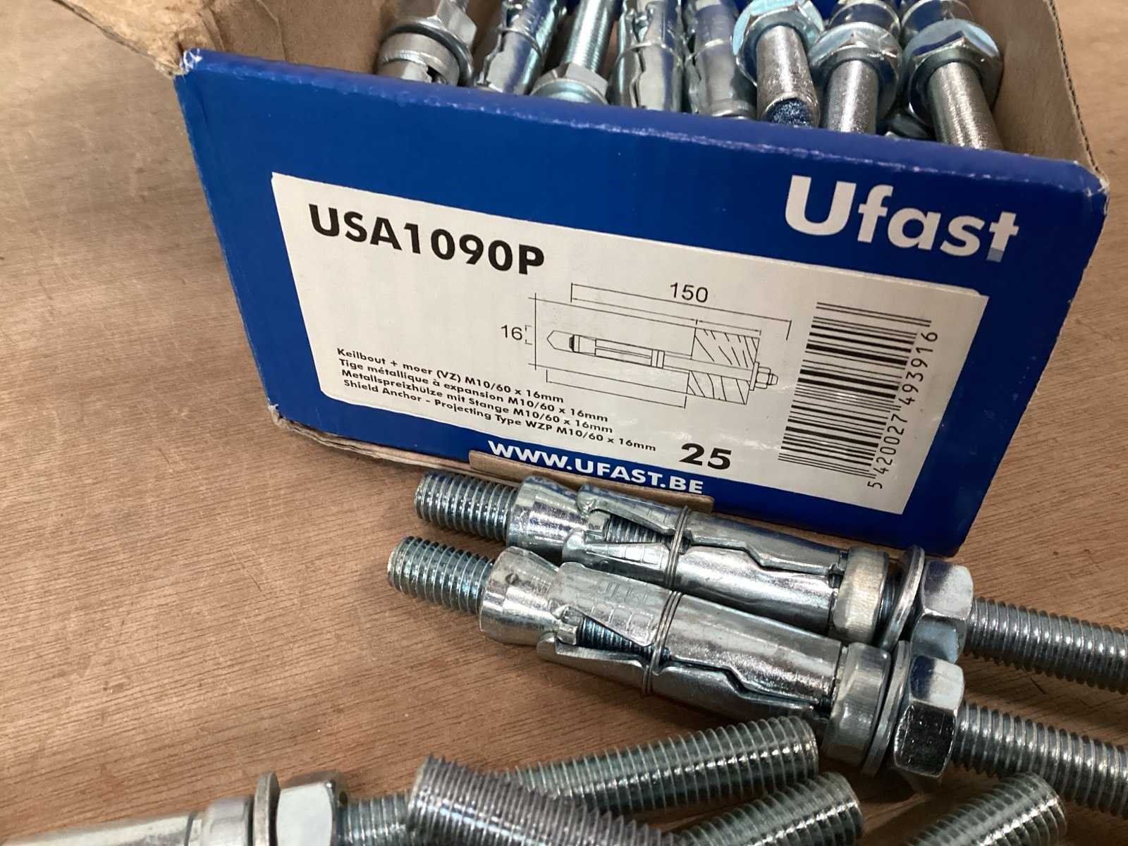 Keilbout M10/60x16 mm, met moer en revet, gegalvaniseerd, verpakt in dozen van 25 stuks Merk: UFAST Type: USA1090P