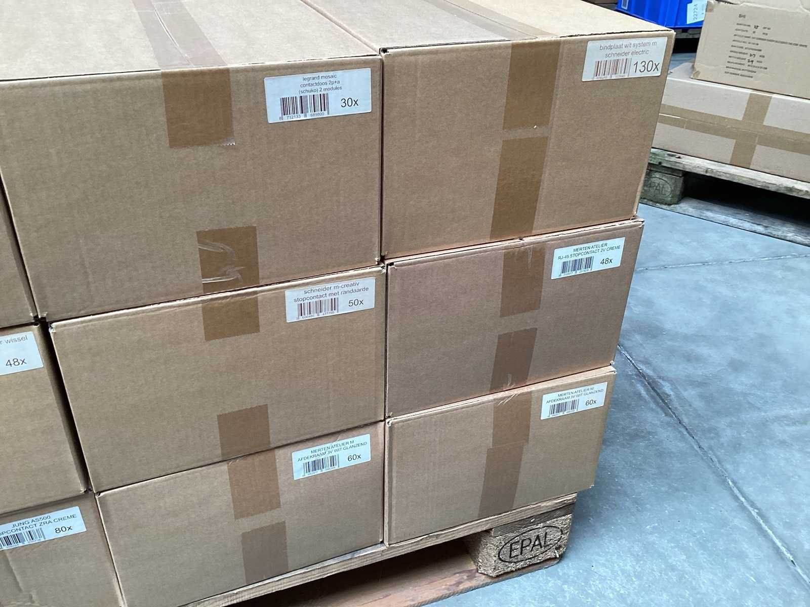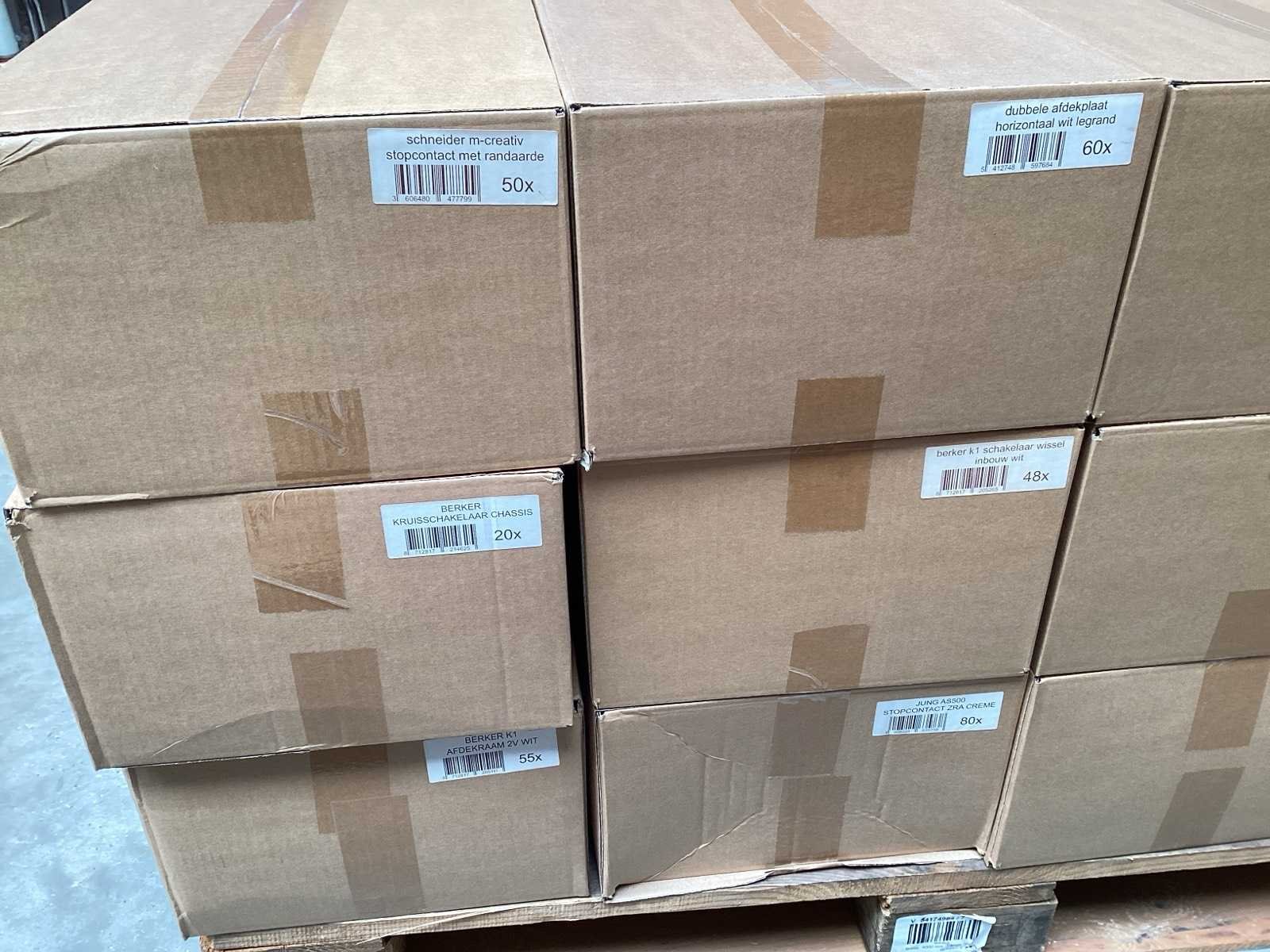 Pallet met schakelmateriaal van A-merken zoals Jung, Schneider electric, berker, Merten, Legrand,