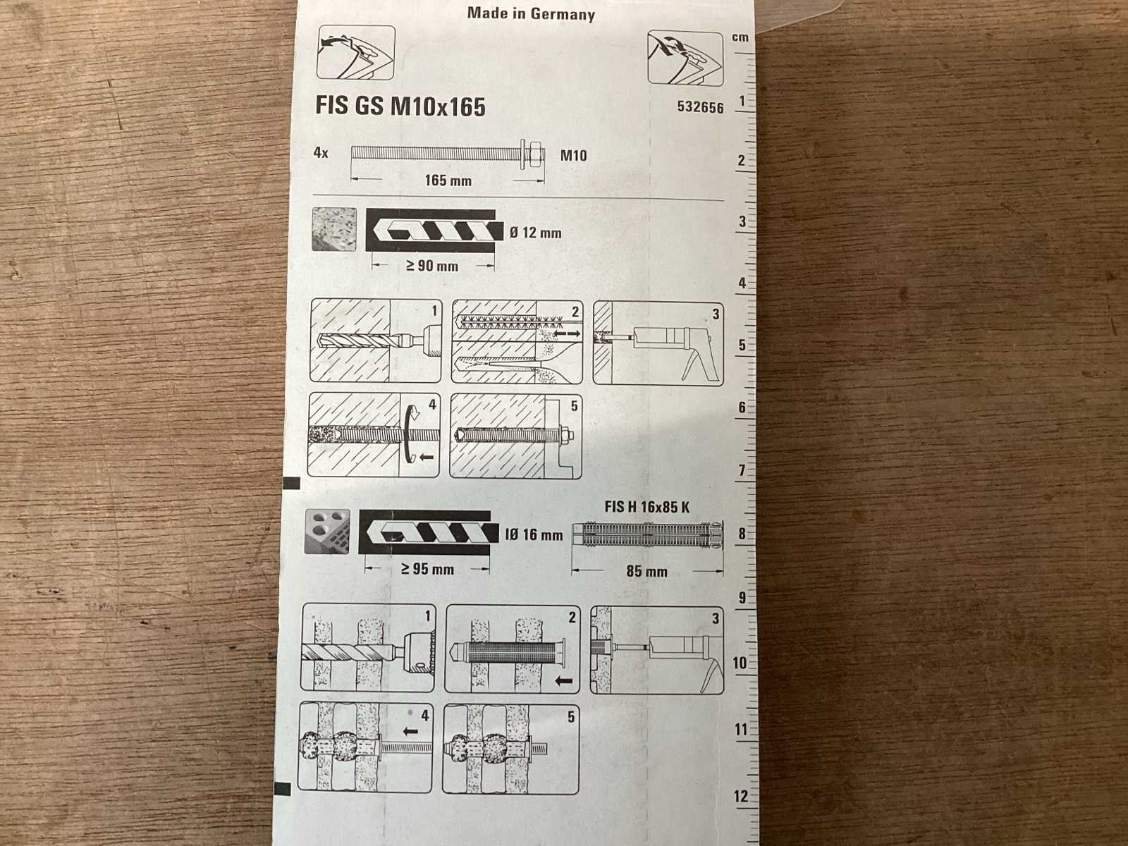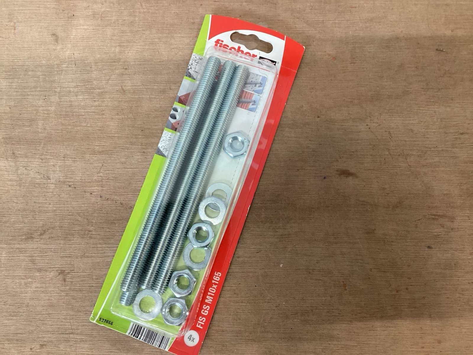 Draadstang M10x165 met revet en moer, gegalvaniseerd, blisterverpakking 4 sets Merk: FISCHER