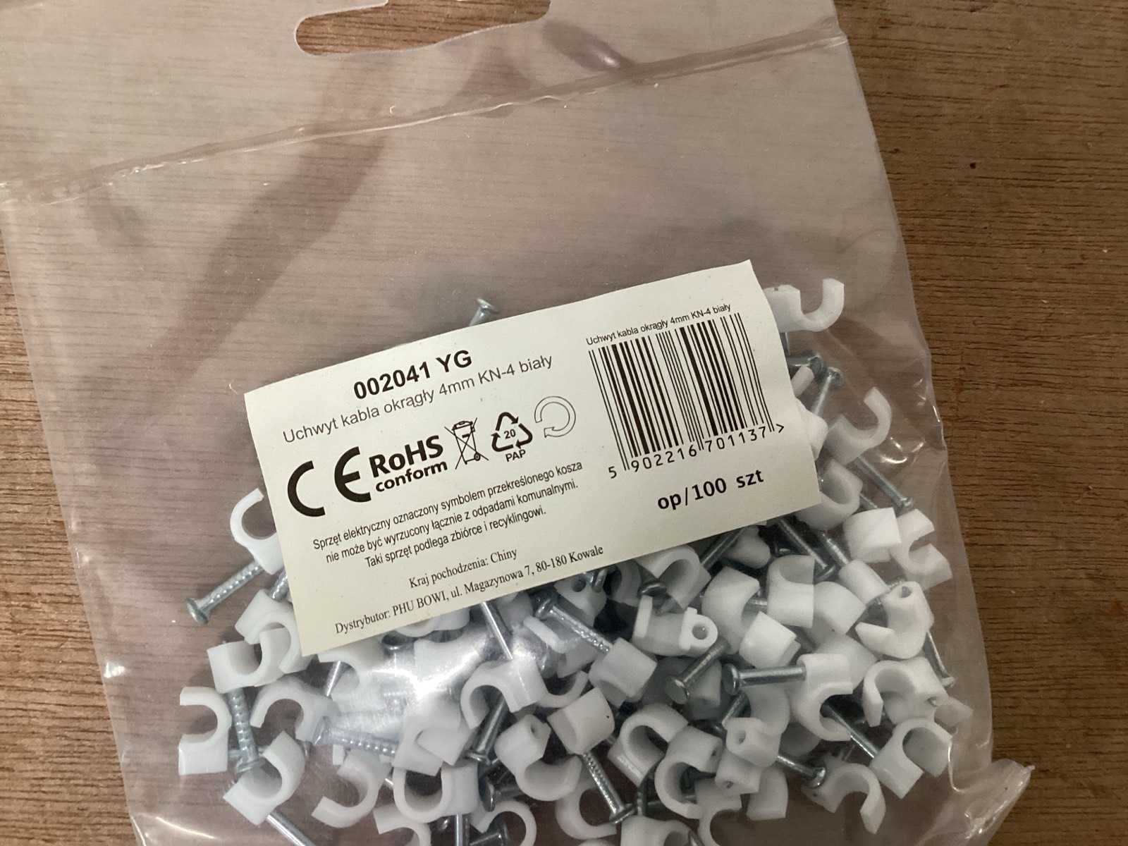 Kabelclip 4mm wit, zak 100 stuks (400x)