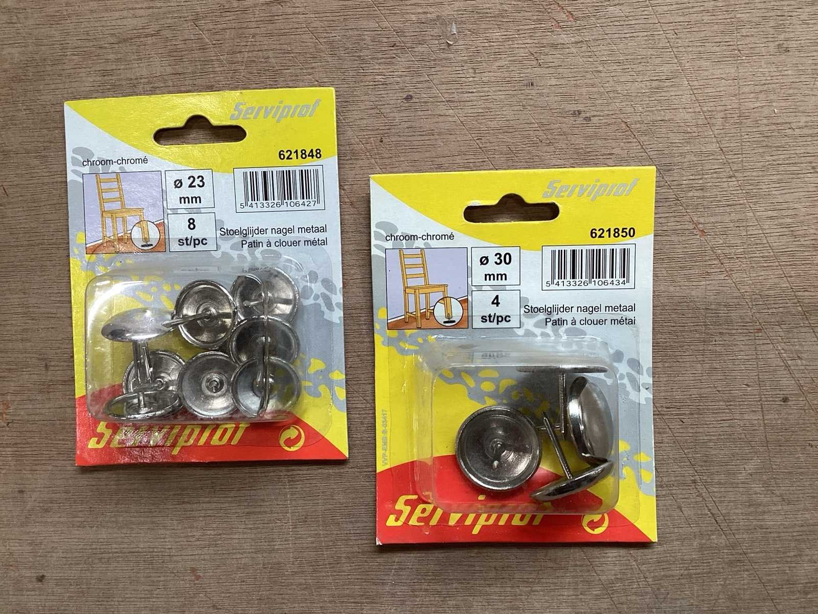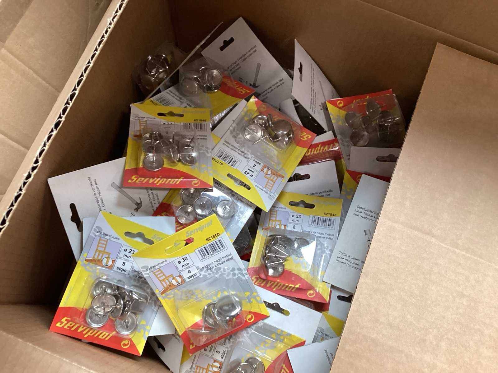 Pallet met meubelglijders van Serviprof, met stalen nagel, 23 en 30 mm