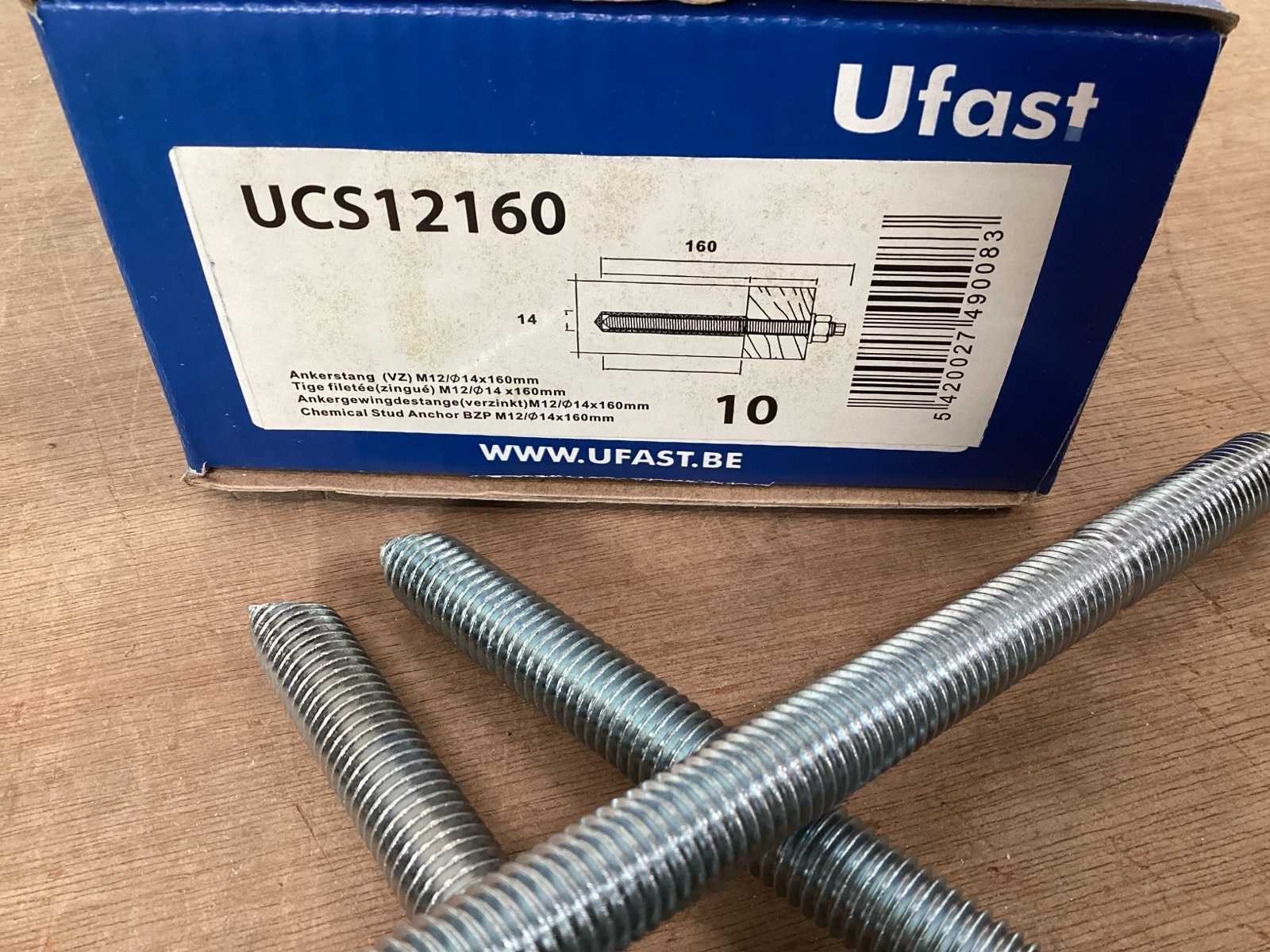 Ankerstang M12x160 met moer en revet, zeskant aandraaivoorziening, bit meegeleverd, verpakt in dozen van 10 stuks Merk: UFAST Type: UCS12160