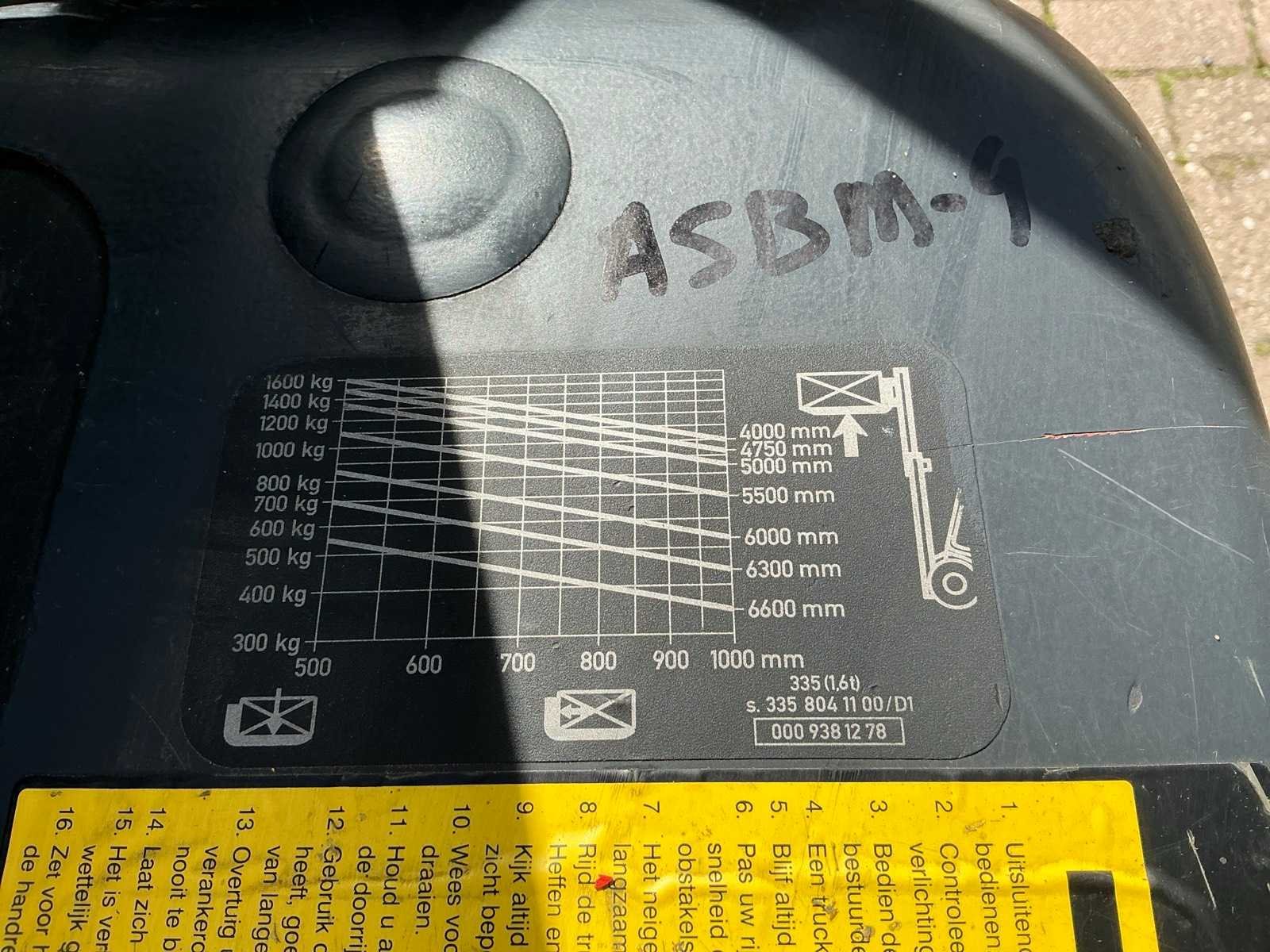 Merk: Linde Type: E16C-02 Serienummer: H2X335L01533 Afgelezen urenstand: 9481 Accu lader: true Free-lift: true Side-shift: true Triple mast: true Hefvermogen: 1600kg Lepellengte: 1200mm Hefhoogte: 4000mm Minimale doorrijhoogte: 2080mm