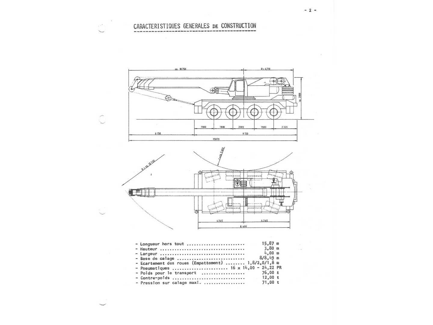 Chassisnummer 18000300; laadvermogen 64000 kg; Assen Gottwald dubbellucht; maximale aslast 19000 kg Merk: Gottwald Type: TMK 100-44 Bouwjaar: 1980 Eigen gewicht: 12000kg Aantal assen: 4 Afgelezen urenstand: 7016hr Totale afmeting L: 158700mm Totale afmeting Breedte: 4000mm Totale afmeting Hoogte: 3800mm