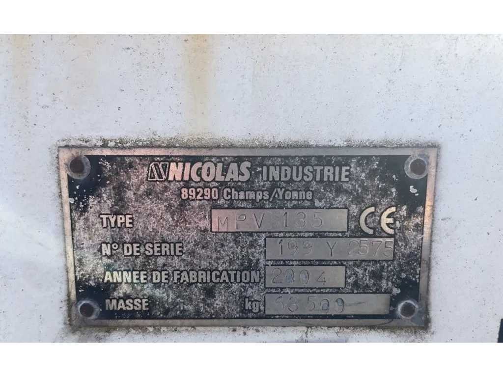 Brandstofsoort: Diesel Transmissie: Automaat Bandenmaat: 215/75 R17.5 Merk: Nicolas Type: MPV 135 Bouwjaar: 2004 Chassisnummer VIN: 199Y2575 Aantal assen: 24 Laadvermogen: 135000kg Eigen gewicht: 50000kg Totale afmeting L: 260000mm Totale afmeting Breedte: 5000mm Totale afmeting Hoogte: 1000mm