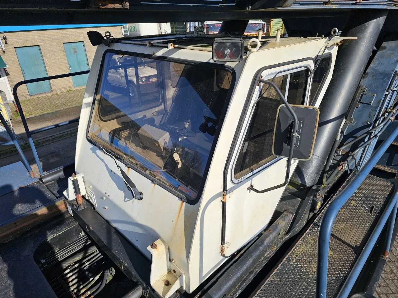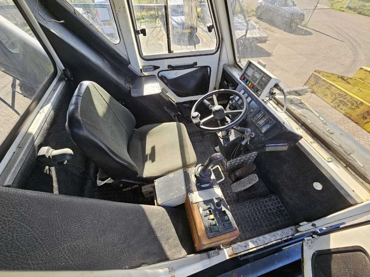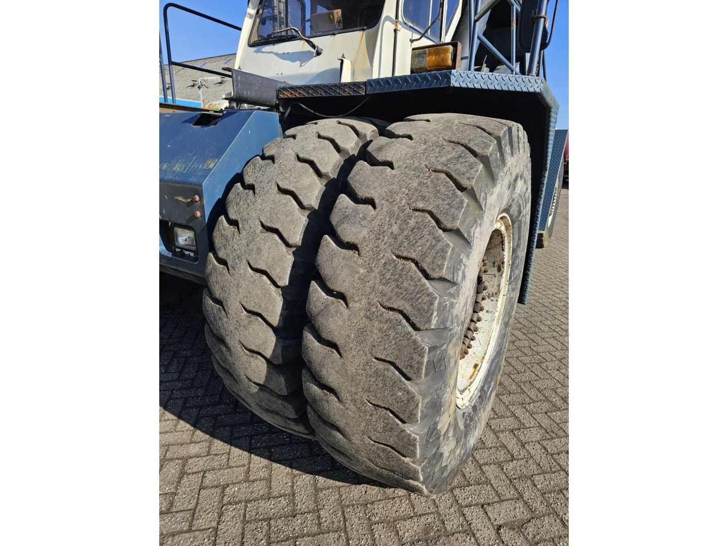 Cabine, Dubbele banden, Hydrauliek, Stuurbekrachtiging, 6 Wielen; uitgerust met dieselmotor en geschikt voor container handeling Merk: Hyco Boss Type: Reachstacker EH143 Bouwjaar: 1989 Eigen gewicht: 50000kg Bandenmaat: 18.00-33 Aantal assen: 2 Afgelezen urenstand: 3922hr Totale afmeting L: 16300mm Totale afmeting Breedte: 4200mm Totale afmeting Hoogte: 4250mm