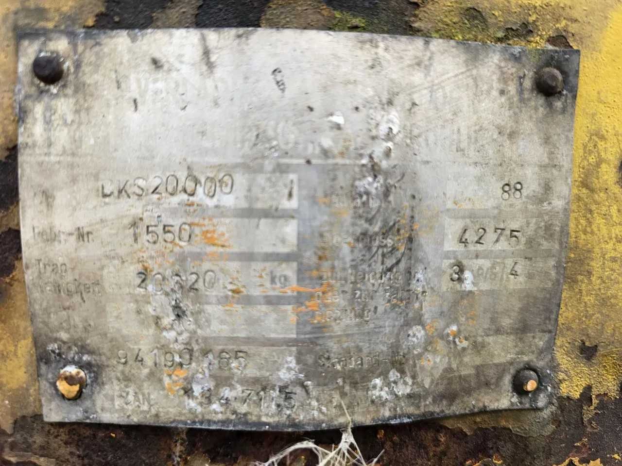 Bladvering; trommelremmen; maximale aslast 9000 kg; bandenmaat 11.00R20 Merk: Hammer Type: CKS20000 Bouwjaar: 1988 Chassisnummer VIN: 001550 Aantal assen: 2 Laadvermogen: 20320kg Eigen gewicht: 7500kg
