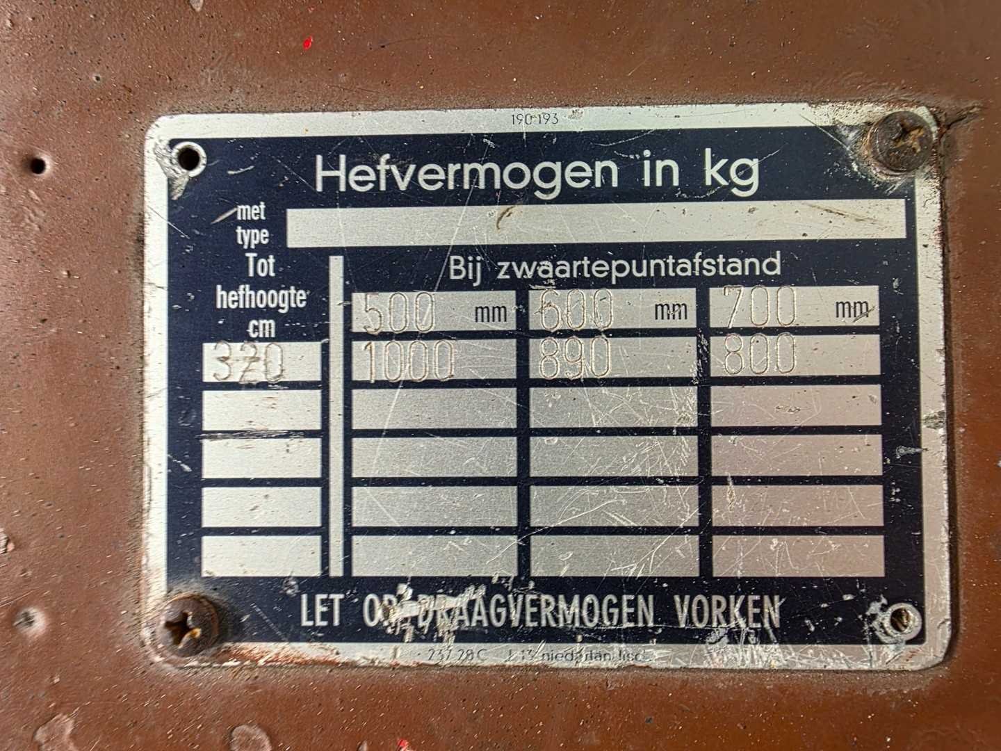 Merk: Steinbock Type: EFG1HC/320Z Bouwjaar: 1989 Brandstof: Elektrisch Afgelezen urenstand: 138 Duplex mast: true Eigen gewicht: 2300kg Hefvermogen: 1000kg Max. hefhoogte: 3200mm