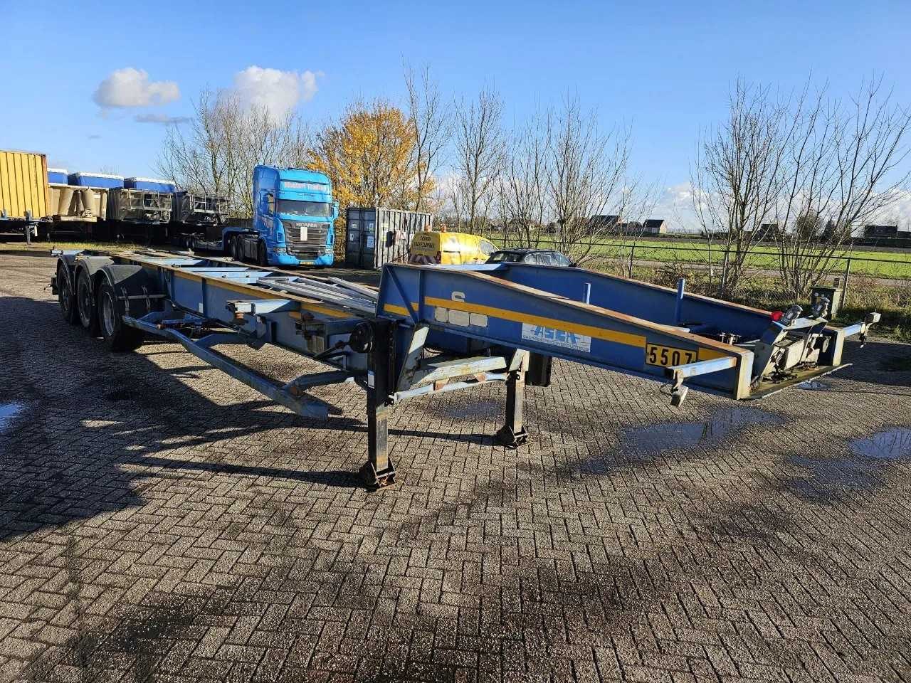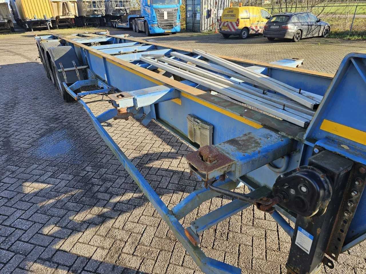 6 wielen; luchtvering; trommelremmen; bandenmaat 385/65 r22.5 Merk: Asca Type: 20ft Bouwjaar: 1997 Chassisnummer VIN: VGTS338221S970387 Kenteken: BG-145-NY Aantal assen: 3 Laadvermogen: 32120kg Eigen gewicht: 4880kg