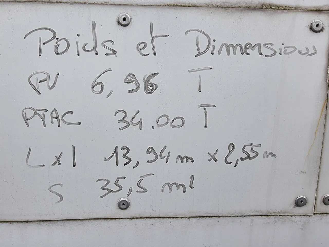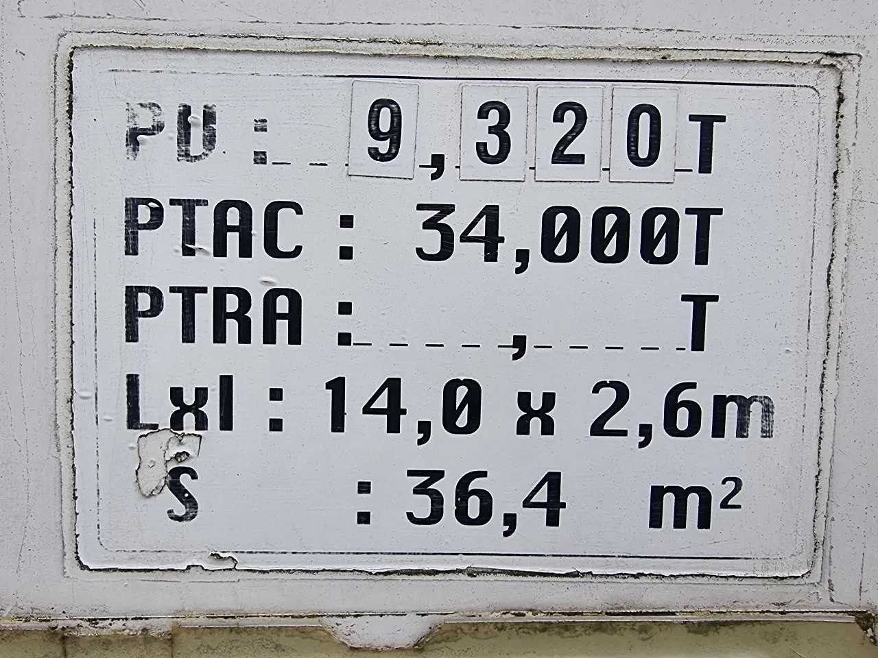 Laadklep merk lamberet ; 6 wielen; achterdeuren; luchtvering; schijfremmen Merk: Lamberet Type: LVFS3F4R Bouwjaar: 2004 Chassisnummer VIN: VM3LVFS3F44R08146 Kenteken: AN-916-DF Aantal assen: 3 Laadvermogen: 24680kg Eigen gewicht: 9320kg Totale afmeting L: 14000mm Totale afmeting Breedte: 2600mm