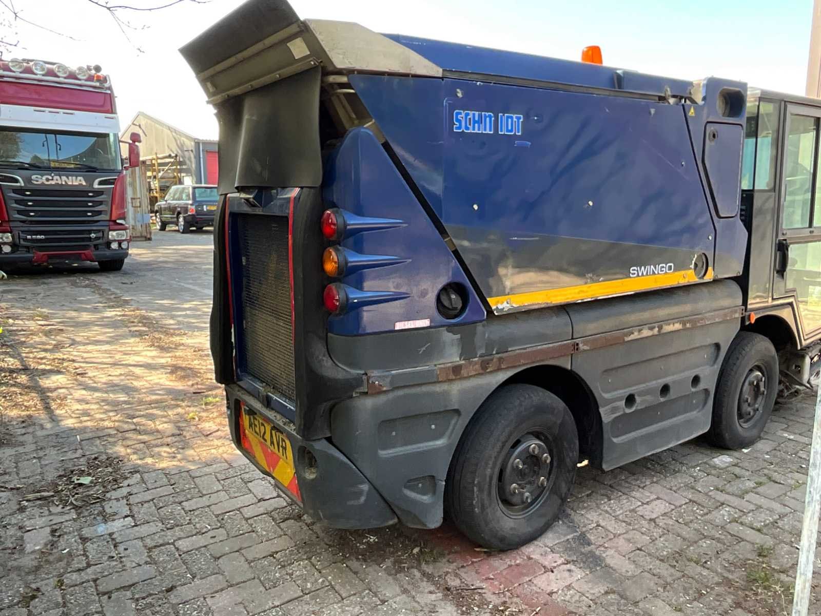 Chassisnummer WSVS5N2S1C1720337; voorzien van 2x staal hydraulische komborsteln komborstel diameter circa 750 mm; sproei installatie; signalisatie verlichting; werk en rij verlichting; links stuurwiel; werkbreedte circa 2000 mm; diesel motor VM05D/9; achteruitrij camera; Let op! zonder kentekenpapieren; Merk: Schmidt Type: Swingo Compact Sweeper 200 Bouwjaar: 2012 Werkbreedte: 2700mm Eigen gewicht: 4250kg Totale afmeting L: 4700mm Totale afmeting Breedte: 1750mm Totale afmeting Hoogte: 2350mm