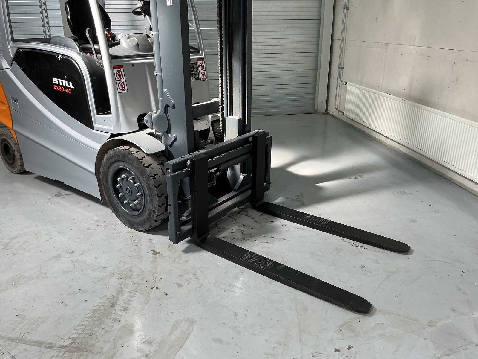 Merk: STILL Type: RX60-40 Bouwjaar: 2011 Serienummer: 516327B00263 Mast: Duplex Afgelezen urenstand: 8278 Side-shift: true Hefvermogen: 4000kg Lepellengte: 1200mm Hefhoogte: 3000mm Minimale doorrijhoogte: 2220mm