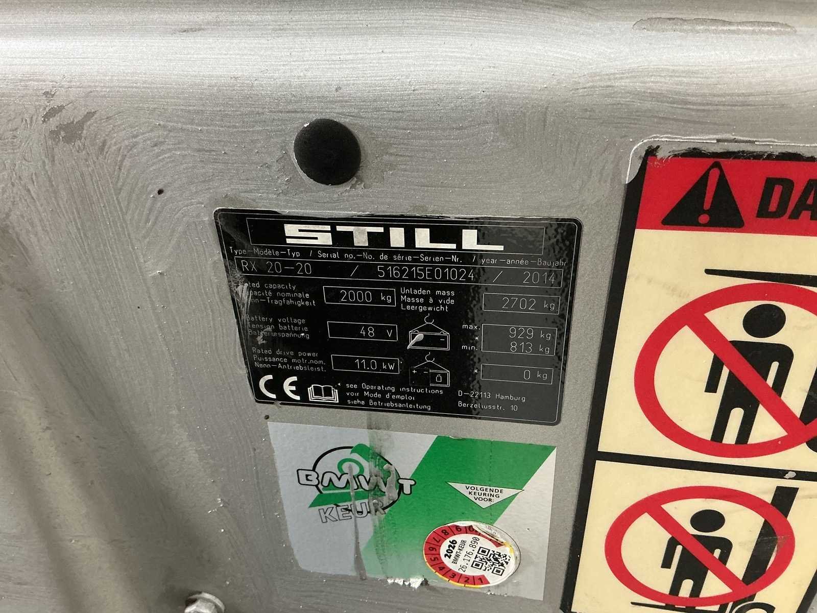 Merk: STILL Type: RX20-20 Container Bouwjaar: 2014 Serienummer: 516215E01024 Mast: Triplex Afgelezen urenstand: 13525 Side-shift: true Triple mast: true Hefvermogen: 2000kg Lepellengte: 1000mm Hefhoogte: 4180mm Minimale doorrijhoogte: 1960mm