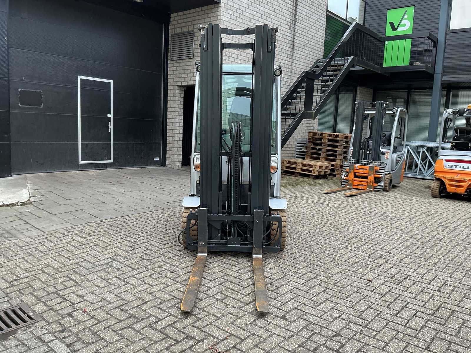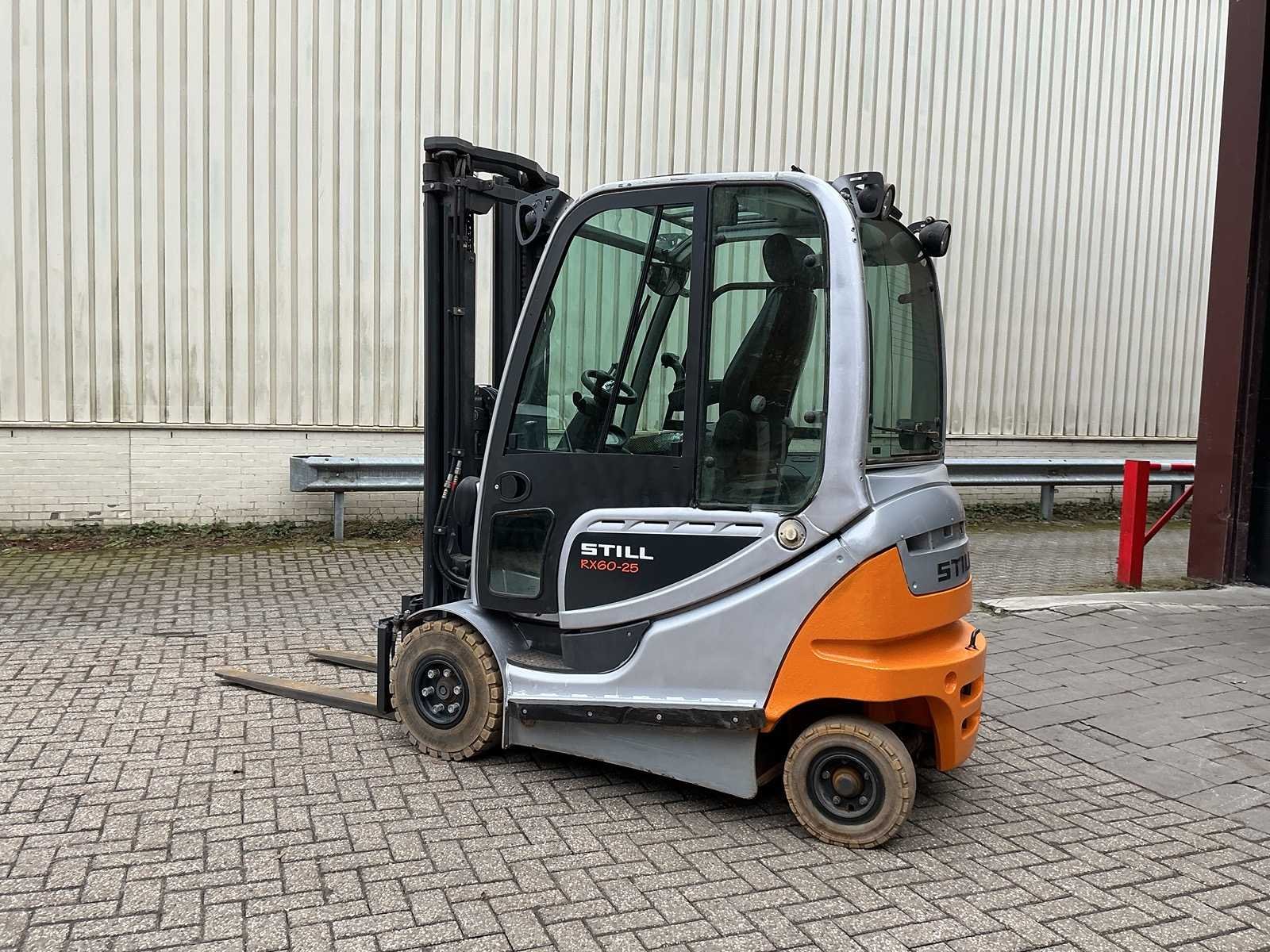 Merk: STILL Type: RX60-25 Serienummer: 516321B00907 Mast: Triplex Aantal wielen: 4 Afgelezen urenstand: 11260 Free-lift: true Triple mast: true Hefvermogen: 2500kg Lepellengte: 1200mm Hefhoogte: 5390mm Minimale doorrijhoogte: 2475mm