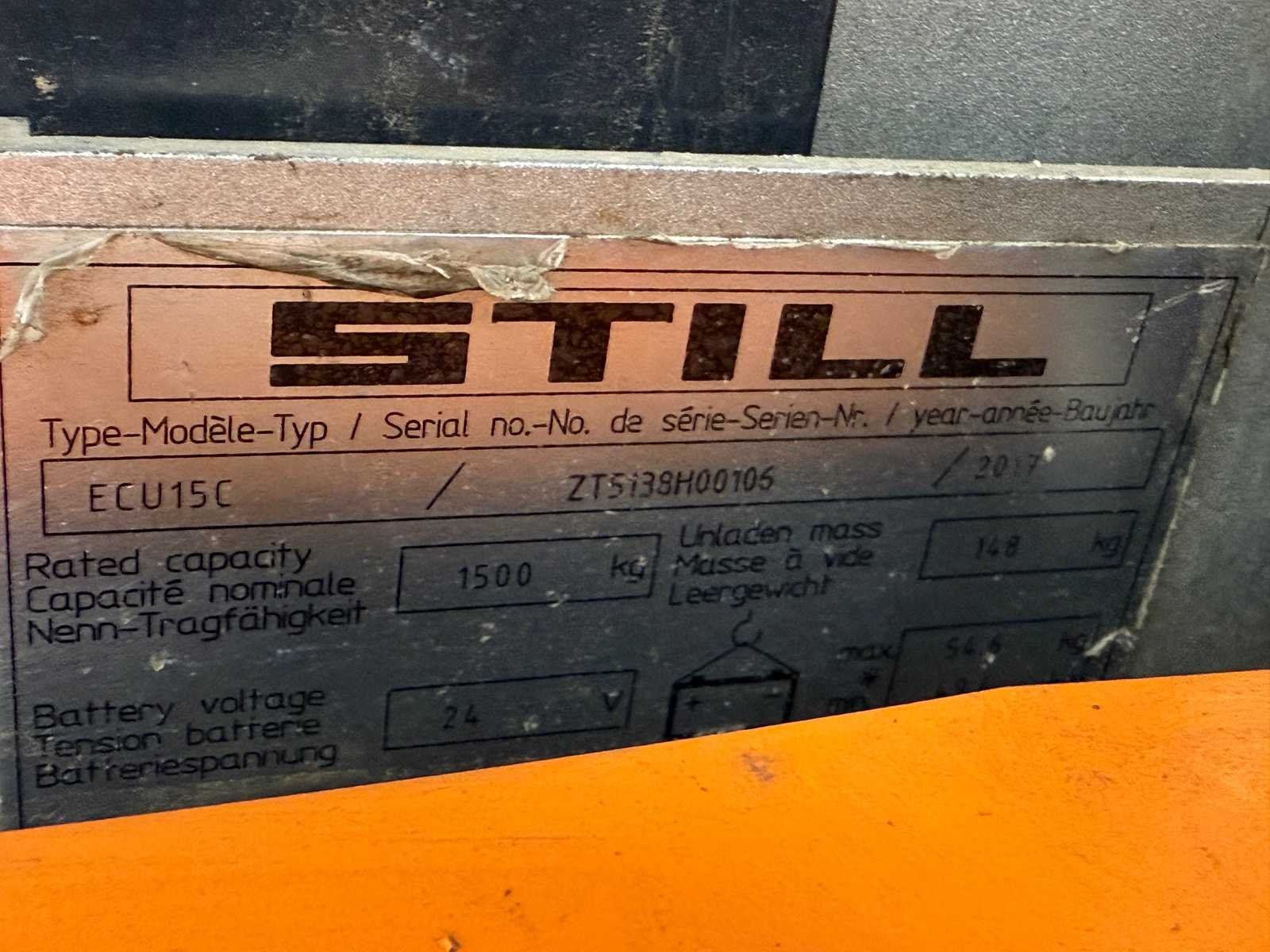 Type: STILL EGU15C Bouwjaar: 2017 Hefvermogen: 1500kg Lepellengte: 1150mm Accu lader: true