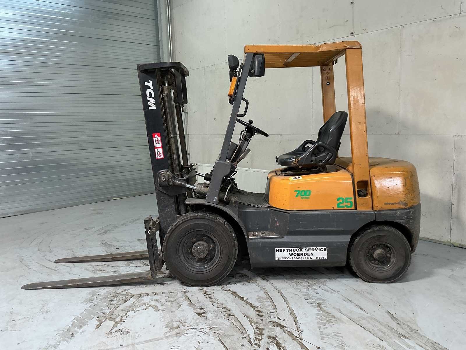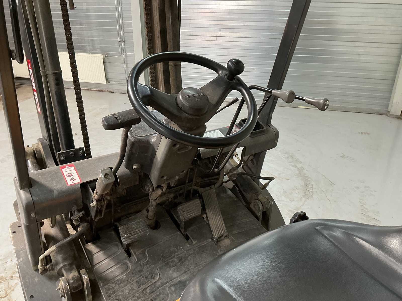 Merk: TCM Serienummer: 32TE68767 Mast: Duplex Afgelezen urenstand: 1941 Duplex mast: true Hefvermogen: 2500kg Lepellengte: 1200mm Hefhoogte: 3000mm Minimale doorrijhoogte: 1980mm Diesel: true