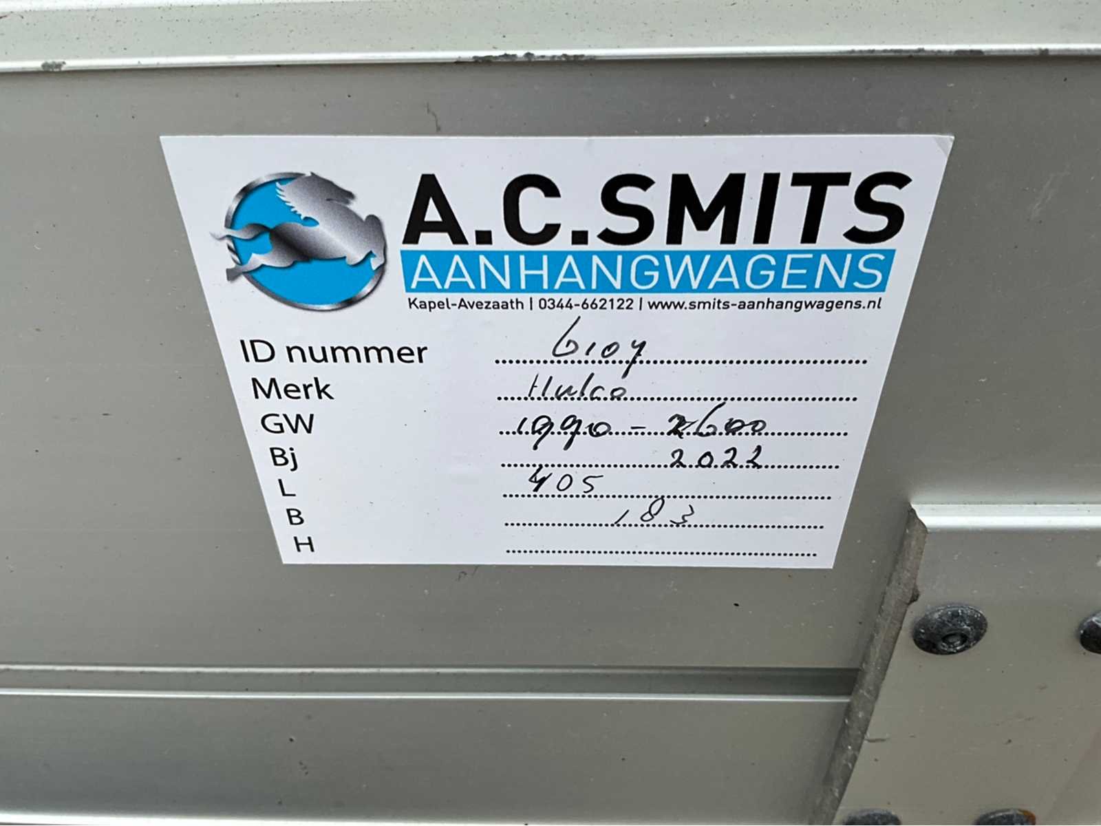 Merk: Hulco Bouwjaar: 2022 Laadbak afmeting l: 405cm Laadbak afmeting b: 183cm Ledig gewicht: 610kg Laadvermogen: 1990kg Datum eerste toelating: 2022-10-15 Datum eerste toelating (NL): 2022-10-15 Kenteken: 42-WGG-7 Kentekenpapieren compleet?: true
