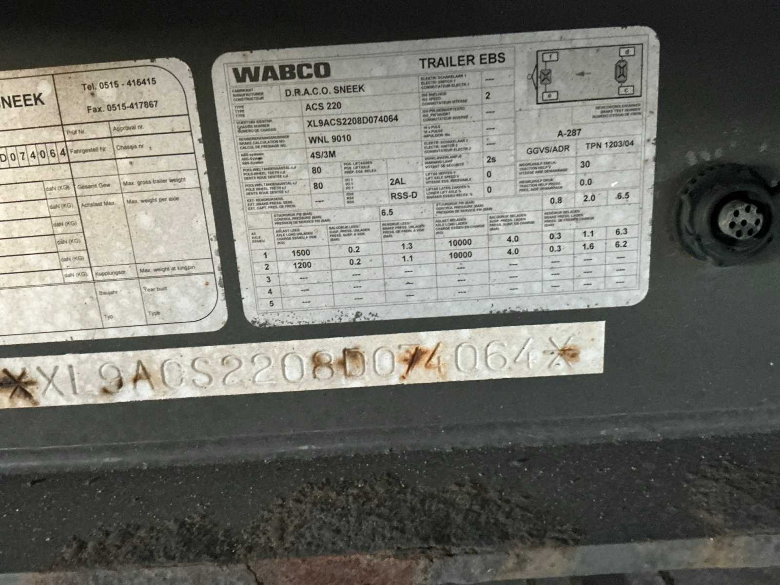 Max massa 20000kg.Luchtgeveerde BPW assen. Bandenmaat 245/70R17.5; let op! Zonder laadbak Merk: Draco Type: ACS220 Bouwjaar: 2007 Chassisnummer: XL9ACS2208D074064 Aantal assen: 2 Ledig gewicht: 3145kg Laadvermogen: 16855kg Datum eerste toelating: 2007-12-28 Datum eerste toelating (NL): 2007-12-28 APK vervaldatum: 2025-12-30 Kenteken: WZ-PT-16 Lengte: 916cm Breedte: 240cm Nationaliteit documenten: Nederlands Zelf rijdend exporteren: Niet mogelijk No self drive export!: true