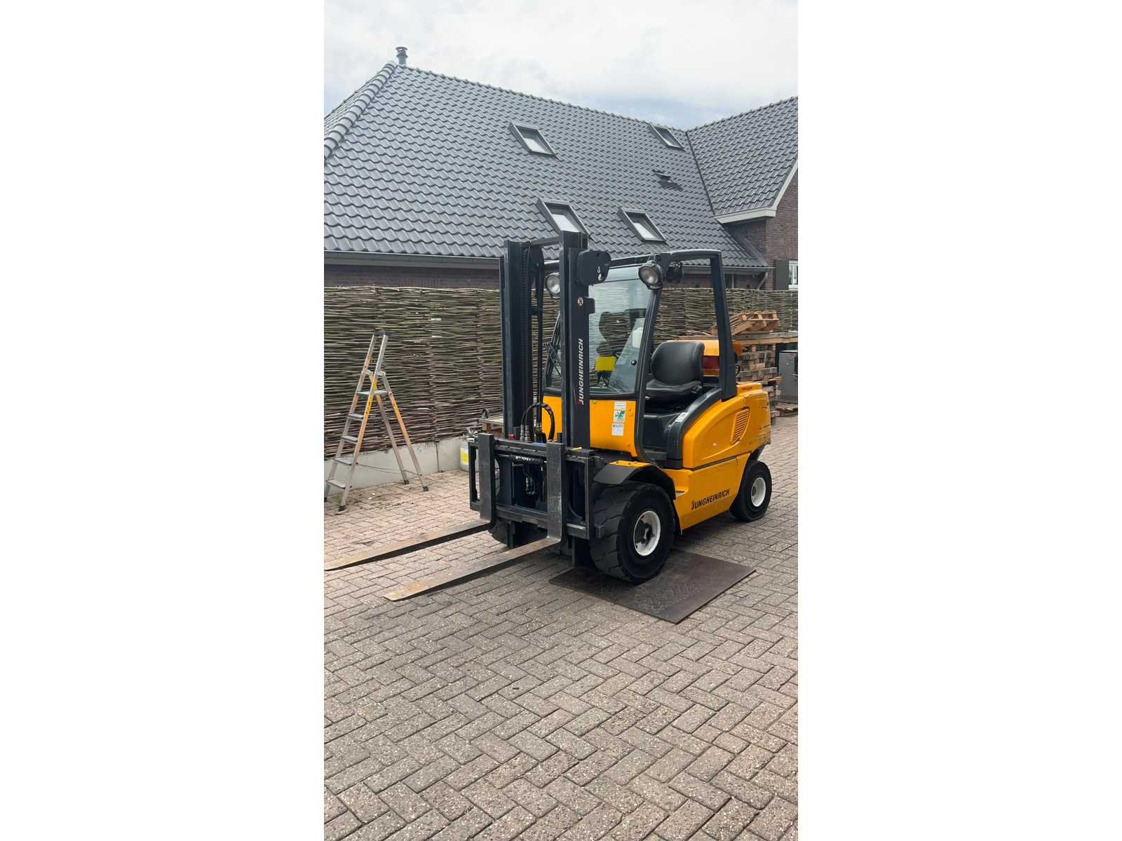 Merk: Jungheinrich Type: TFG 30S Bouwjaar: 2011 Aantal wielen: 4 Afgelezen urenstand: 8581 Side-shift: true Triple mast: true Eigen gewicht: 4850kg Hefvermogen: 3000kg Hefhoogte: 3100mm Vol rubber banden: true LPG: true