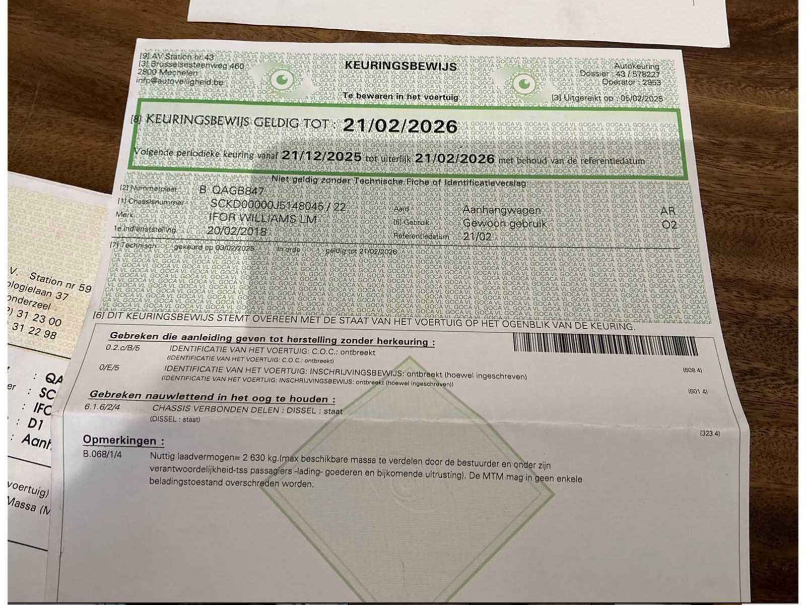 Ifor Williams LM35 dubbelassige plateau-aanhangwagen, geschikt voor het transport van bouwmaterialen, machines en diverse ladingen. Het betreft een middenas aanhangwagen (categorie O2) met een maximaal toegelaten massa (MTM) van 3.500 kg en een tarra van circa 870 kg. De aanhangwagen is voorzien van een mechanische ophanging, oploopremsysteem en een KNOTT koppeling (type 204001, 4-bol). Het chassisnummer luidt SCKD00000J5148045 (eerste inschrijving 20/02/2018). De aanhangwagen is uitgevoerd met een stalen chassis en aluminium neerklapbare zijborden. De laadvloer vertoont normale gebruikssporen conform professioneel gebruik. De aanhangwagen is voorzien van achterverlichting, reflectoren en een neuswiel. Afmetingen laadbak: Bij een Ifor Williams LM35 bedraagt de standaard laadbakafmeting: Lengte: circa 3,60 meter. Breedte: circa 1,95 meter. Merk: Ifor Williams Type: LM35 Bouwjaar: 2018 Chassisnummer: SCKD00000J5148045 Datum eerste toelating (NL): 20-02-2018 Nationaliteit documenten: België